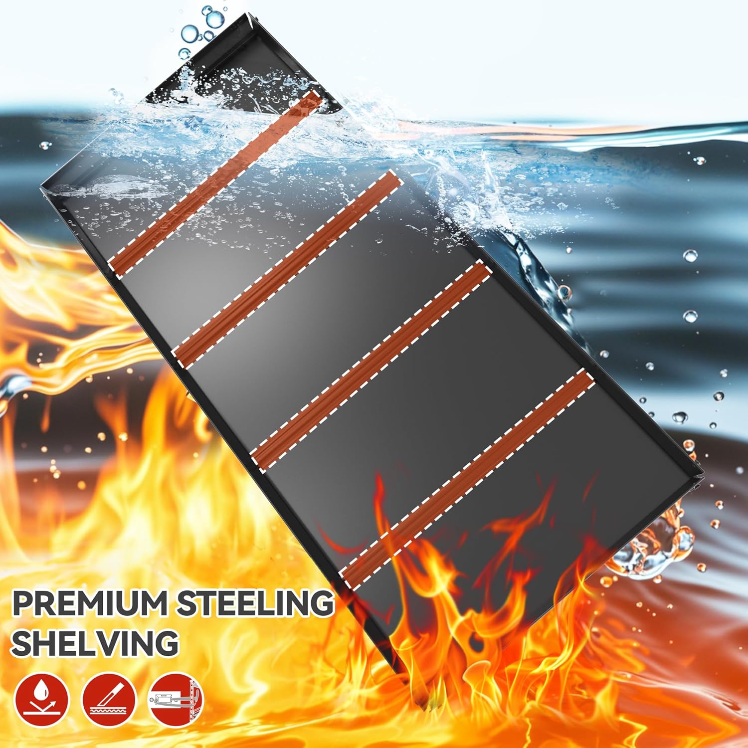 - Sturdy, Durable, Safe Garage Storage Shelves Lasts for Decades: No wobbling or shaking when fully loaded as two layer vertical bars will help distribute the pressure. Each metal board has 3 support ribs that ensures no dent or deformation. The garage shelving heavy duty lasts for decades (indoor dry condition) for all storage needs