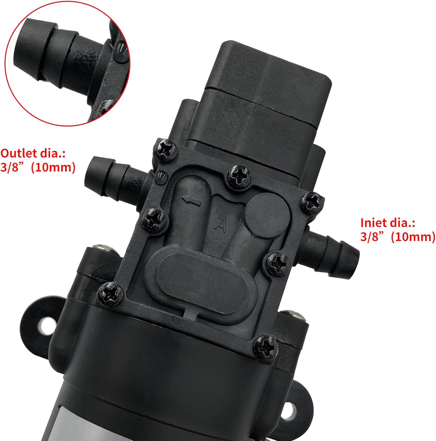 - DC 12V diaphragm water pump flow rate of 4.5L/min 1.2GPM,Self-priming vertical pumping: 6.6 ft (2m),Pure copper motor runs stably and works with low noise