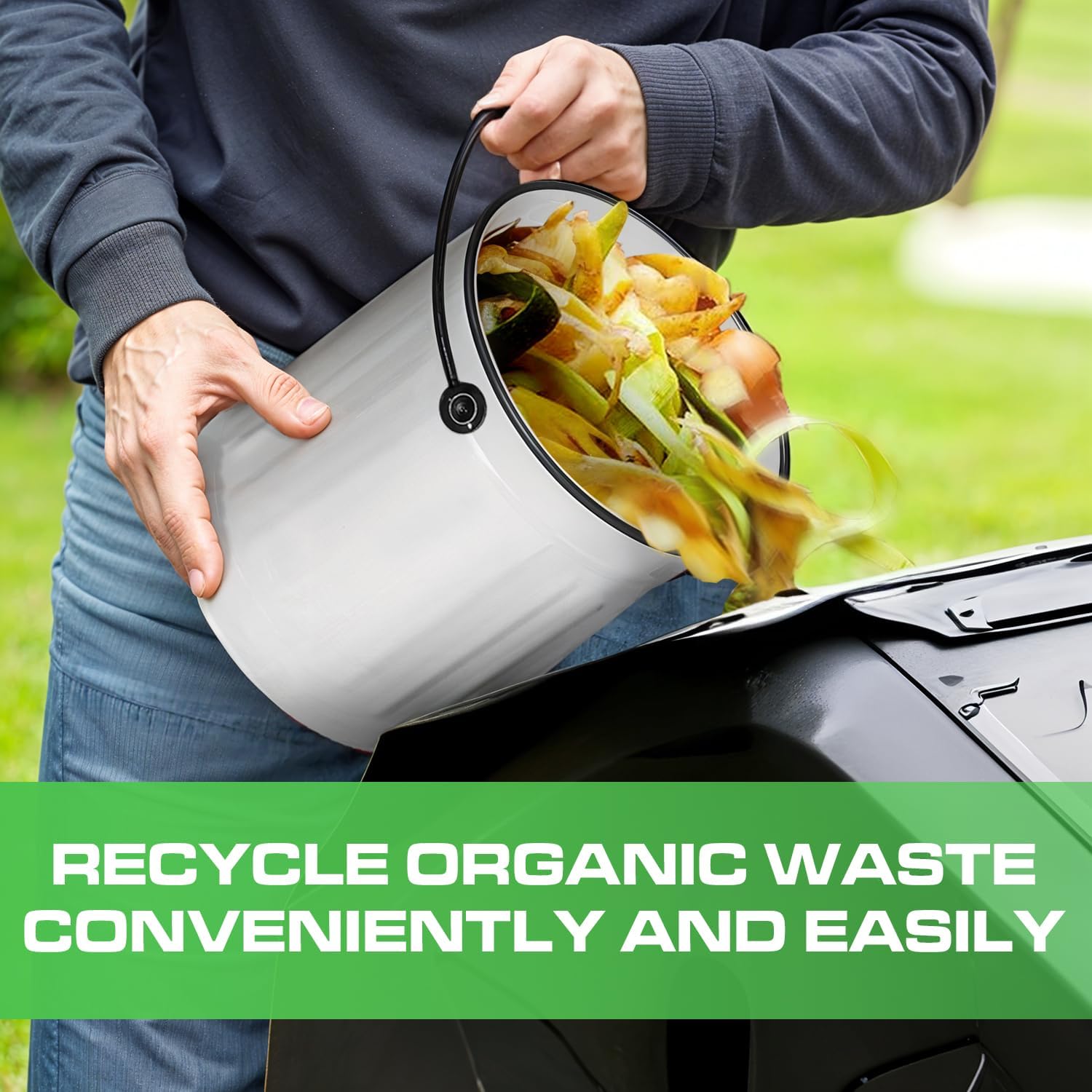 - High Quality Compost Bin Kitchen Counter: This countertop compost bin made of durable steel. Our indoor compost bin, food waste bin for kitchen is sturdy construction, ensures longevity, resists rust, and is easy to clean. Easy to carry with a sturdy handle.