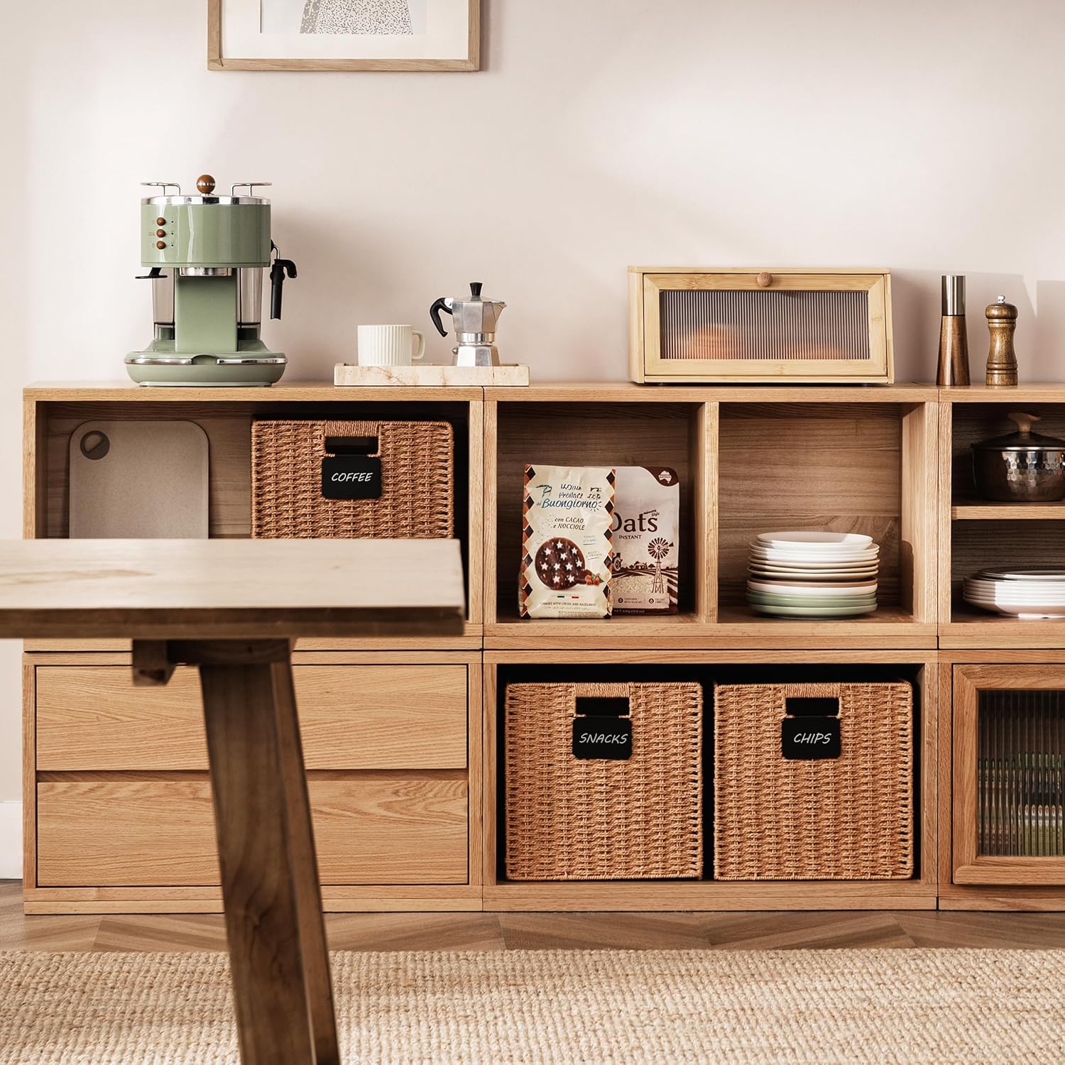 - Easy to assemble: When you receive the package, the wicker storage basket is folded, you just need to open it and put down the bottom board, you will get a perfect wicker baskets. You can fold them completely flat and stack them up against each other to save space when not in use.