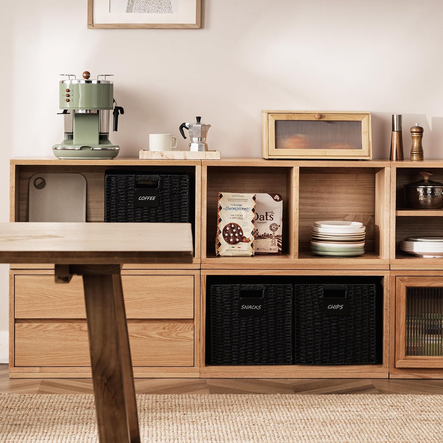 UBBCARE 4 Pack Wicker Basket, 12×12 Storage Cubes with Label, Foldable Cube Storage Bin with Handle, Square Storage Basket for Shelves, Woven Paper Rope Basket for Organizing, Black