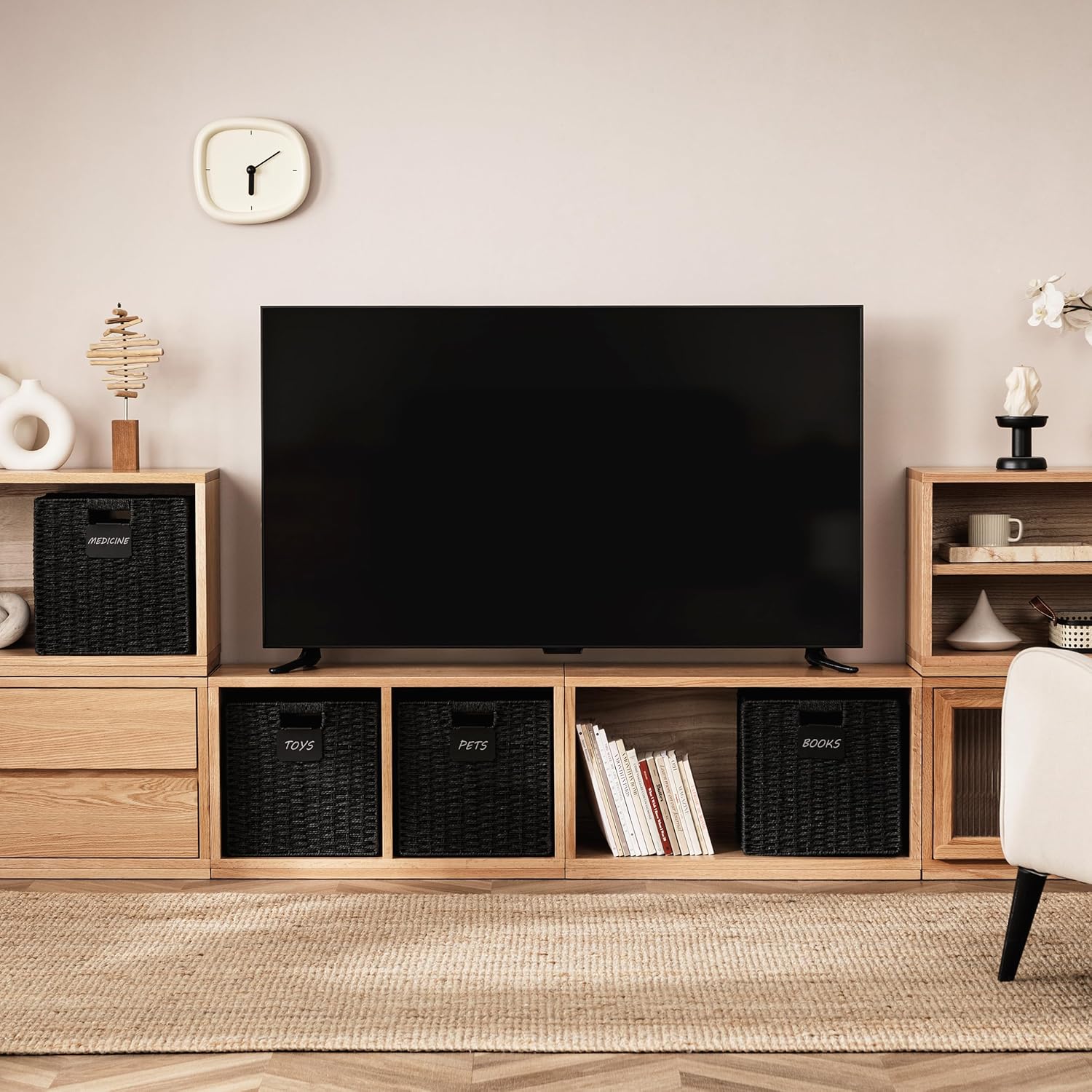 - Perfect size basket: 13L×13H×12.2W basket for storage, large capacity, convenient to store more daily necessities. The size of these storage cube bins fits the IKEA KALLAX shelf unit series, living room TV cabinet, shelves, closets office table and nursery room cube bookshelves.