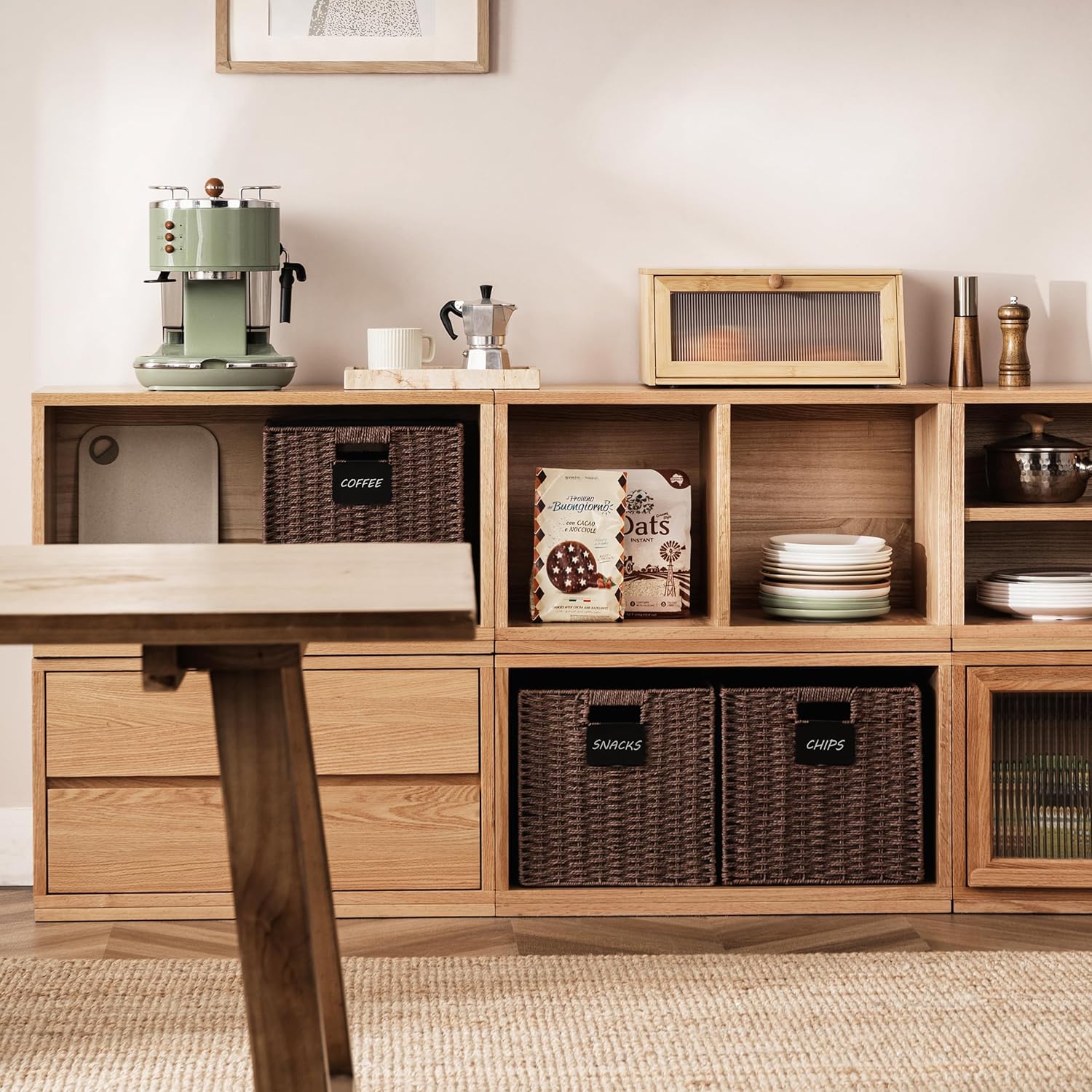 UBBCARE 4 Pack Wicker Basket, 13×13 Storage Cubes with Label, Foldable Cube Storage Bin with Handle, Square Storage Basket for Shelves, Woven Paper Rope Basket for Organizing, Brown