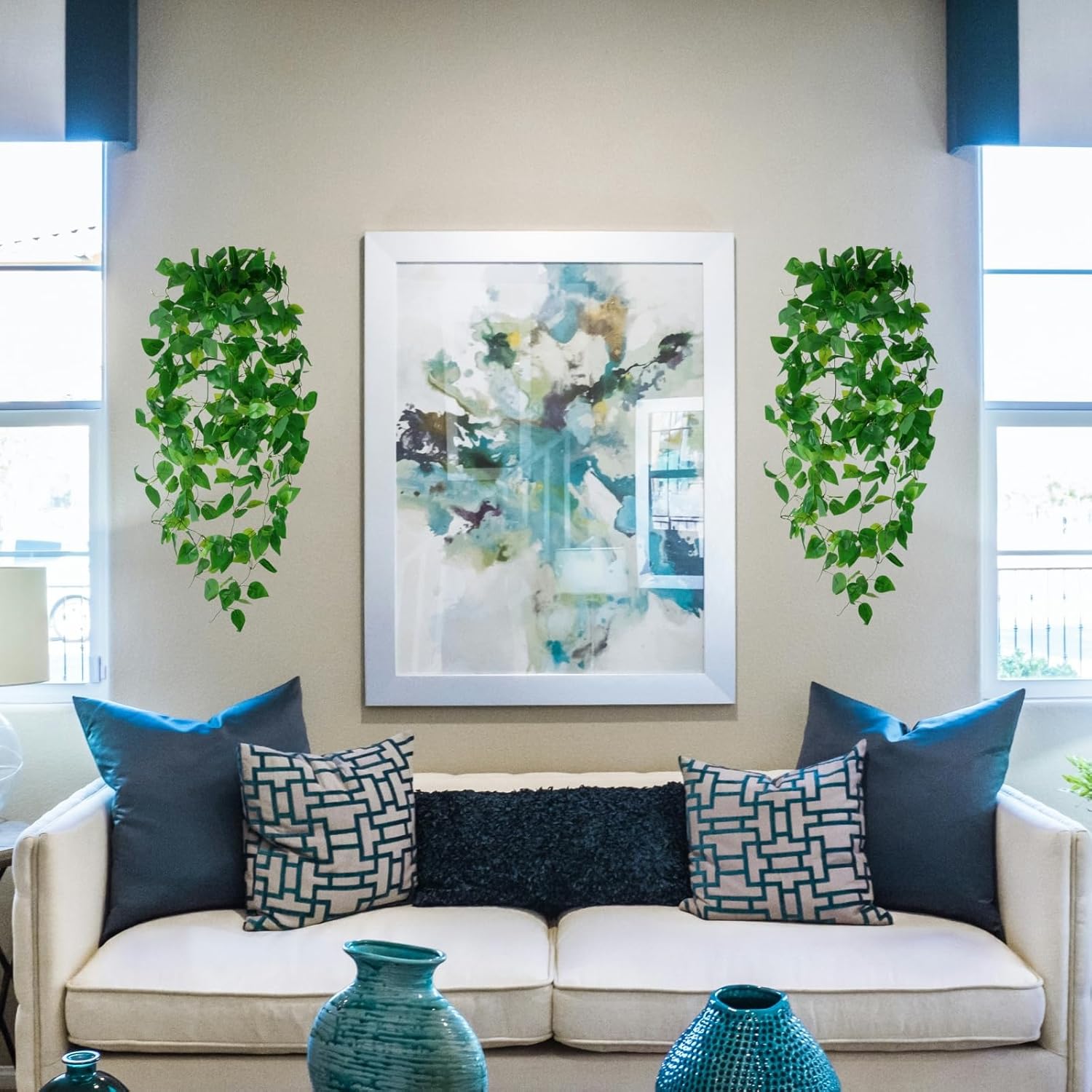 Fake Hanging Plants Vines(4pcs) for Room Decor, Artificial Ivy Greenery Garlands for Home Bedroom Living Aesthetic Kitchen Office Wall Patio Bookshelf,Indoor,Outdoor Farmhouse Decorations(No Basket)