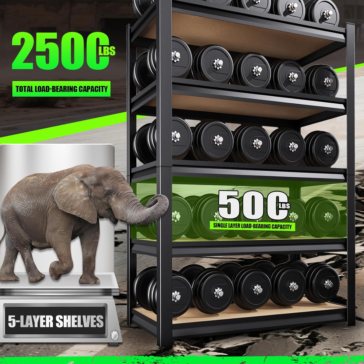 - ⑤Powerful Storage Capacity--Multi-functional shelves are designed for ultimate space tidiness. If you are still troubled by how to organize your cluttered garage and which old items to shed, garage storage shelves help you easily regain a neat and orderly home environment. Not only do the shelf expand your storage space for a clean and aesthetically pleasing environment, but the open space allows you to find items at a glance.