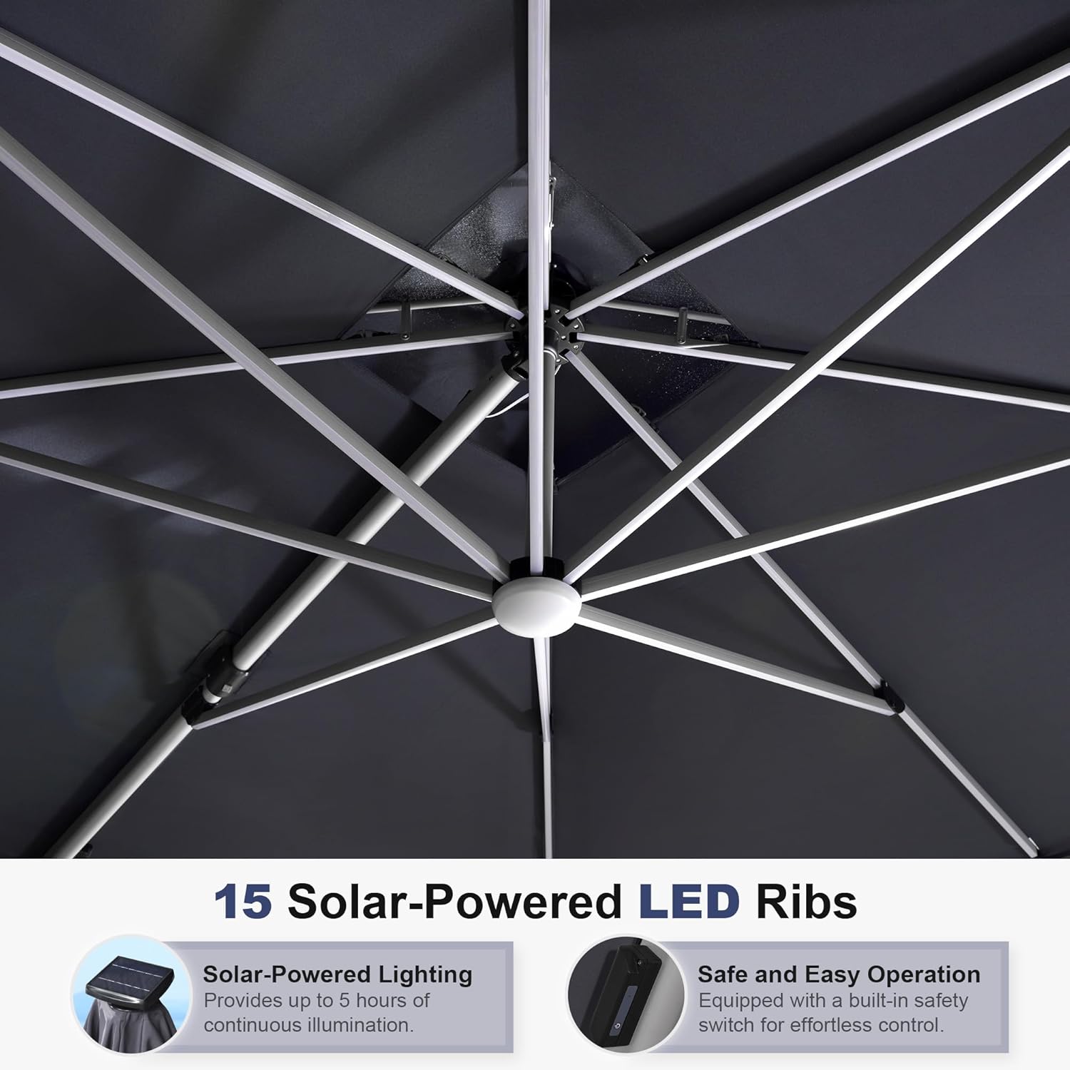 - Structural stability: 8 all-aluminum poles and a wider outdoor umbrella tray, anti-oxidation spray painted, extension of time of use