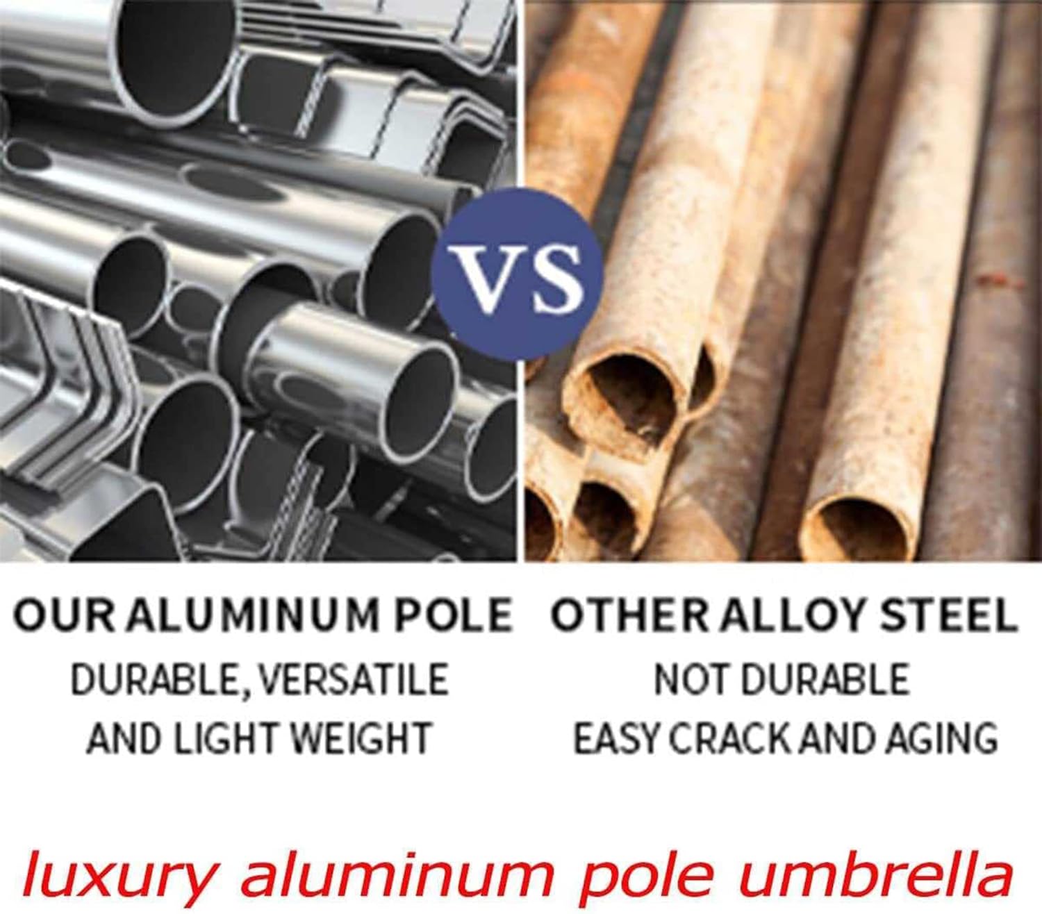 • DURABLE ALUMINUM UMBRELLA - Compared to the common alloy steel on the market, our 1.5 inches diameter aluminum pole umbrella has better corrosion resistance and longer service life. Able to maintain its good performance and appearance for a long time.