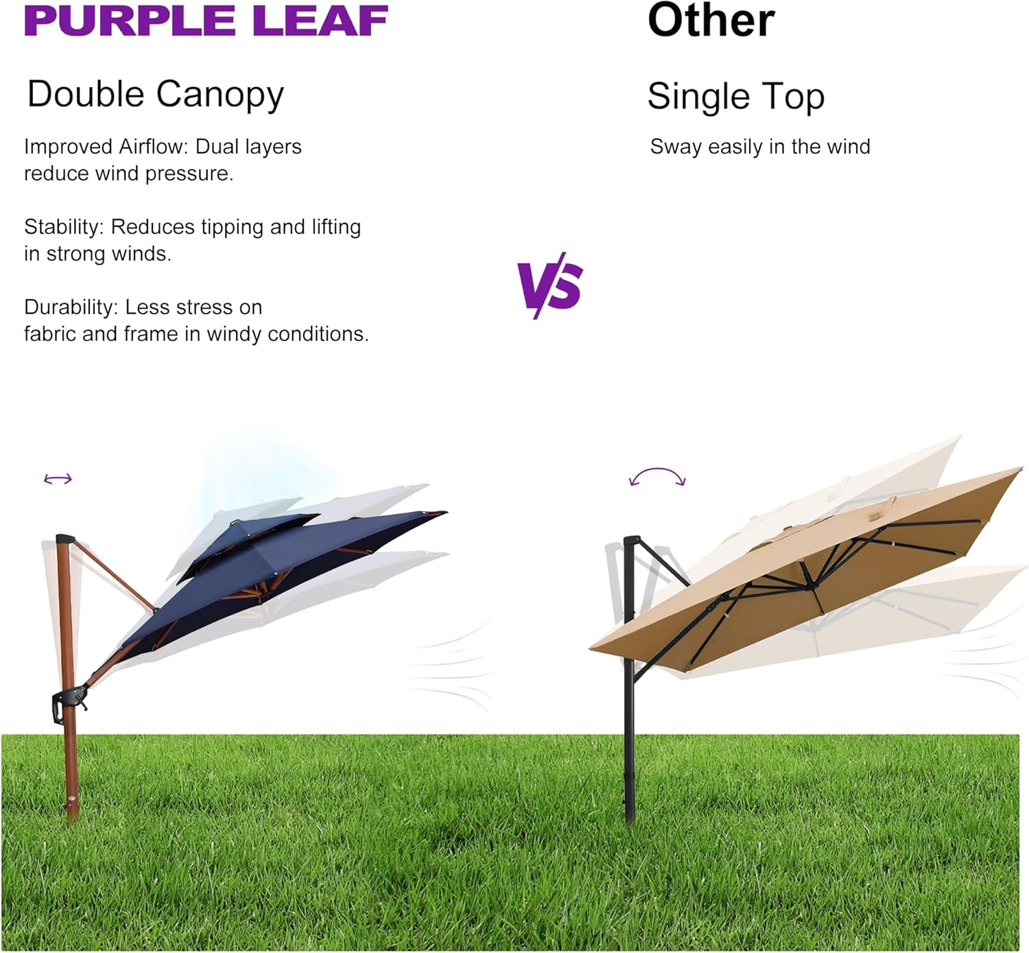 PURPLE LEAF 13ft Patio Umbrella Outdoor Round Umbrellas Large Cantilever Umbrella Windproof Offset Umbrellas Heavy Duty Sun Umbrella for Garden Deck Pool Patio, Navy Blue
