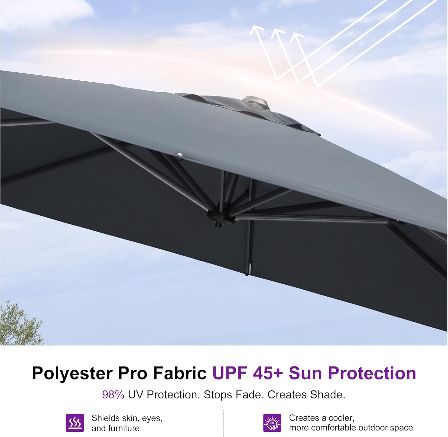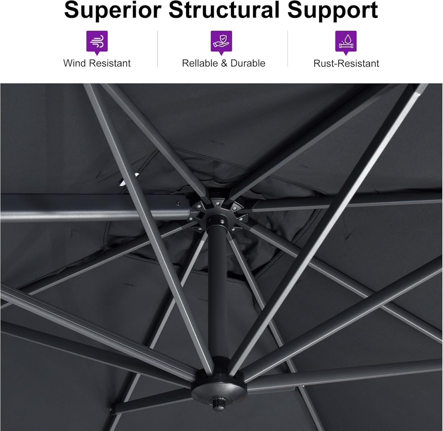 PURPLE LEAF 8 Feet Patio Umbrella Outdoor Cantilever Square Umbrella Aluminum Offset Umbrella with 360-degree Rotation for Garden Deck Pool Patio, Grey