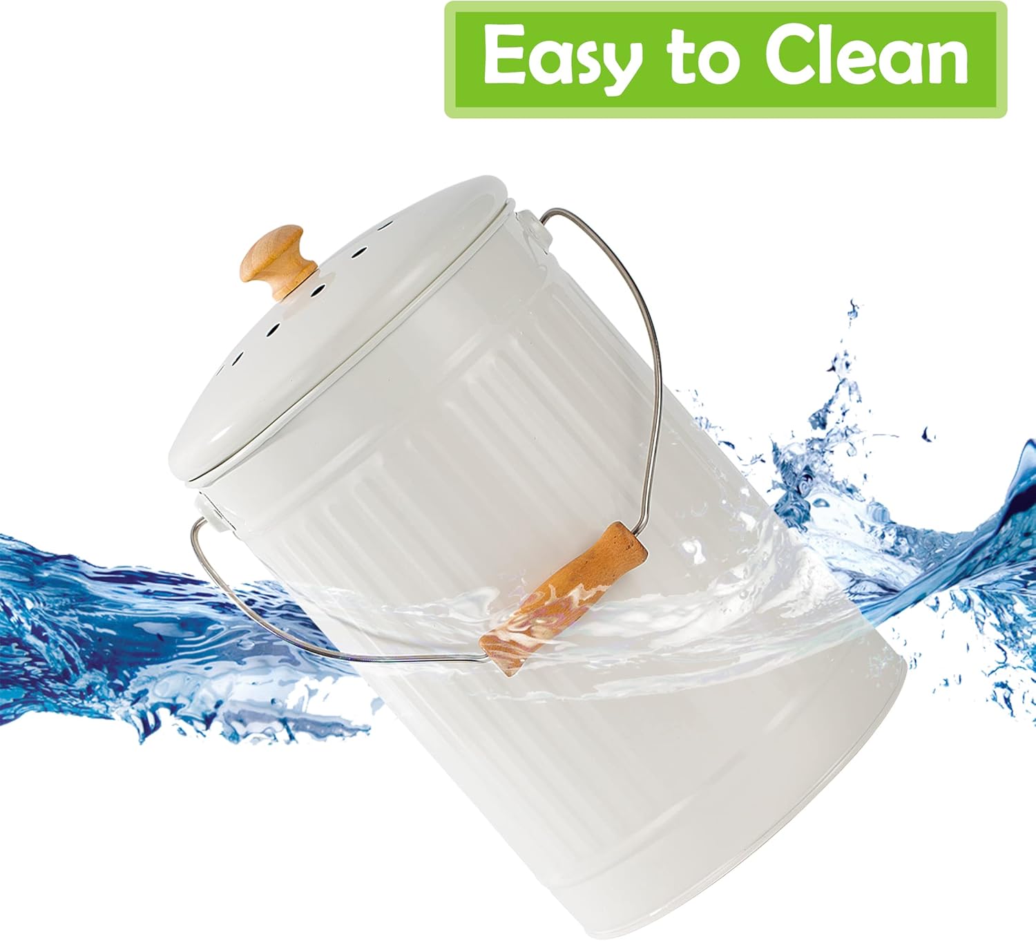 - 🗑VERY EASY TO CLEAN: The smooth lacquer finish is very easy to clean, just wash the compost bin with warm soapy water and gently wipe the lid with a damp cloth.