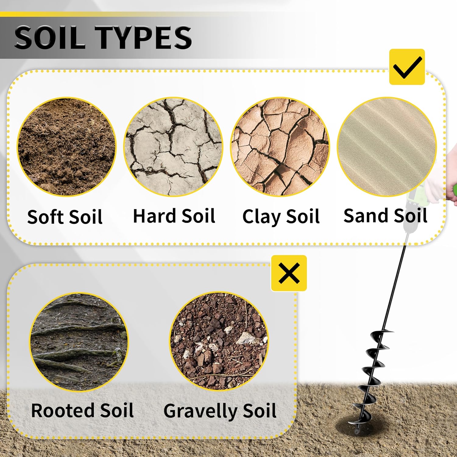 - Widely Applied - This plant auger for drill is perfect for planting bulbs, potted plants, vegetables, flowers, bare root trees and shrubs, turning over soil or planting boxes, mixing seeds, soil, fertilizer, and even digging holes for fence posts, ground lights.