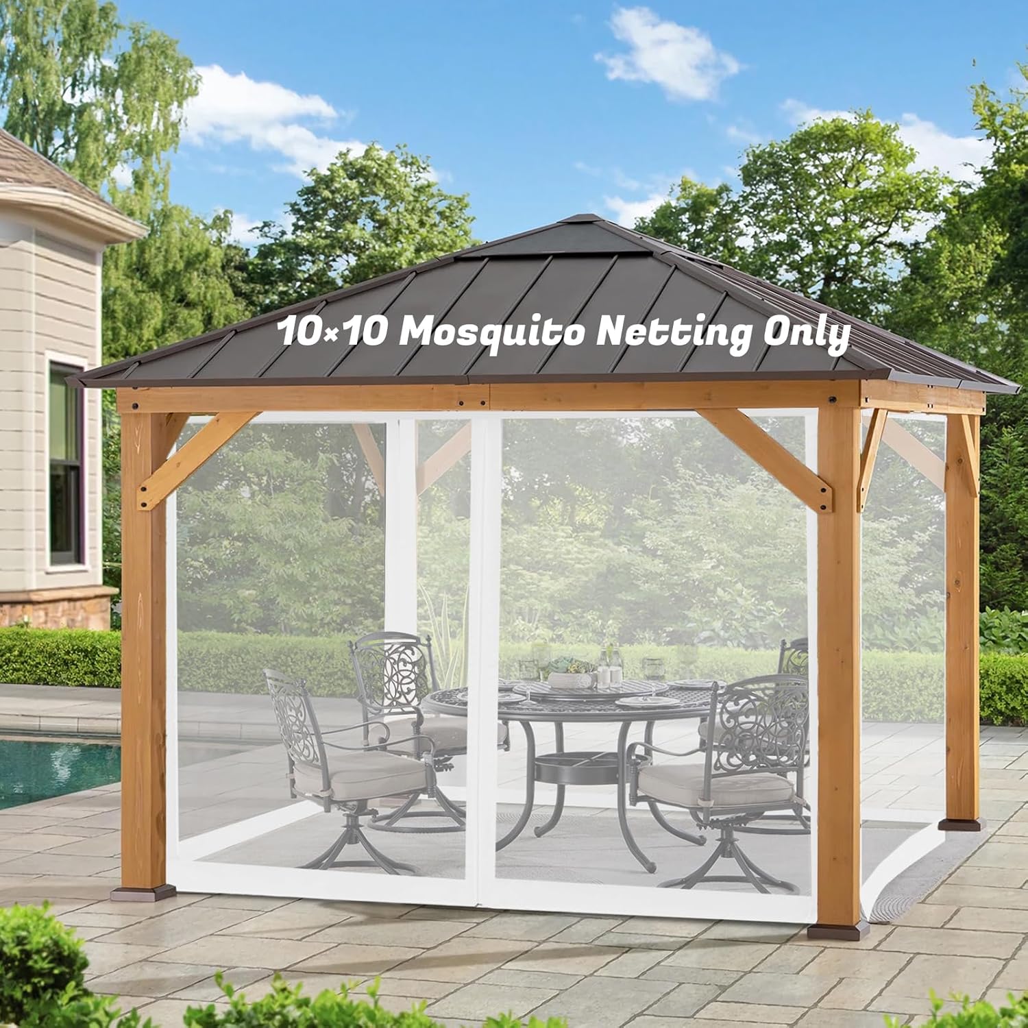 10'x10' Mosquito Netting for Patio with Zipper, Outdoor Replacement Mesh Sidewall Netting for Porch/Patio/Canopy/Gazebo (Mosquito Netting Only, White)