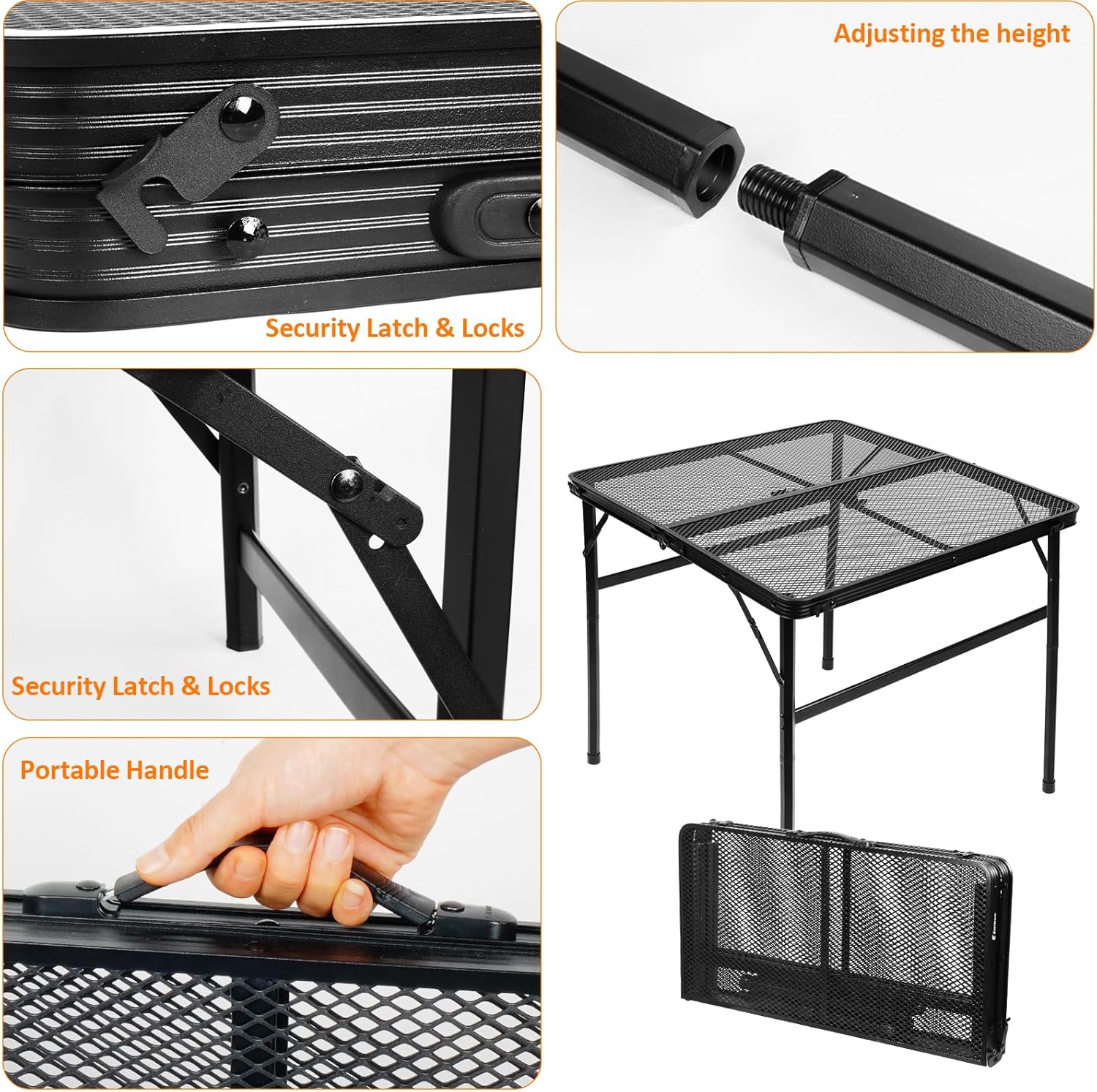 - [Adjustable Grill Table]The folding camping table allows you to adjust the height of the camping table from an initial height of 12.2 inches to a height of 22 inches,providing a perfect surface for you to picnic on the grass or grill standing up