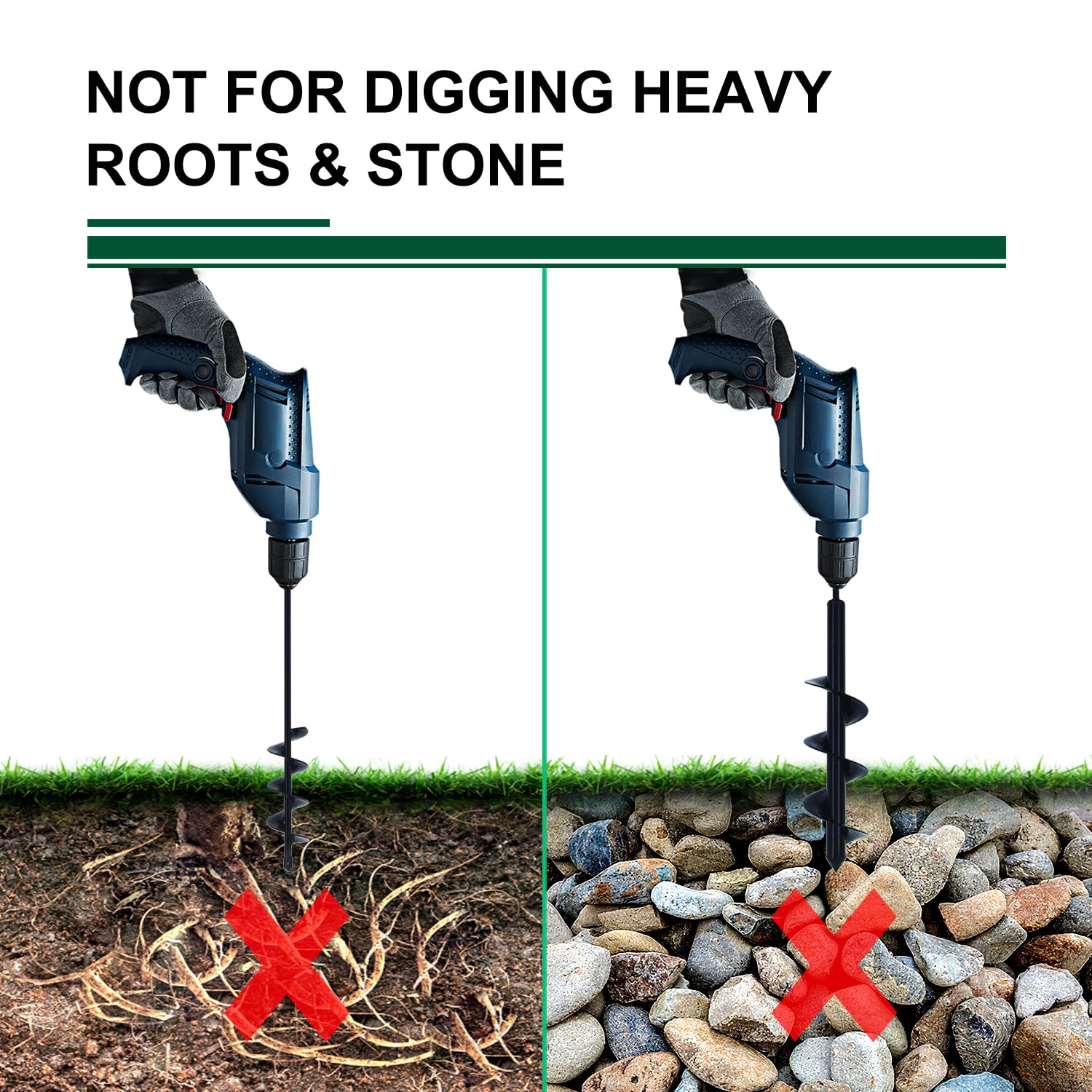 - 【Easier to Use - For 3/8'' Hex Drill Driver】- Enjoy the easy installation! Just insert the auger drill bit into the hex drill driver, tighten it, and rotate it to remove the soil. Repeat drilling until the desired planting depth is achieved. 18V or greater drill recommended. When idle, keep the auger clean and free of soil & debris to prevent oxidation.