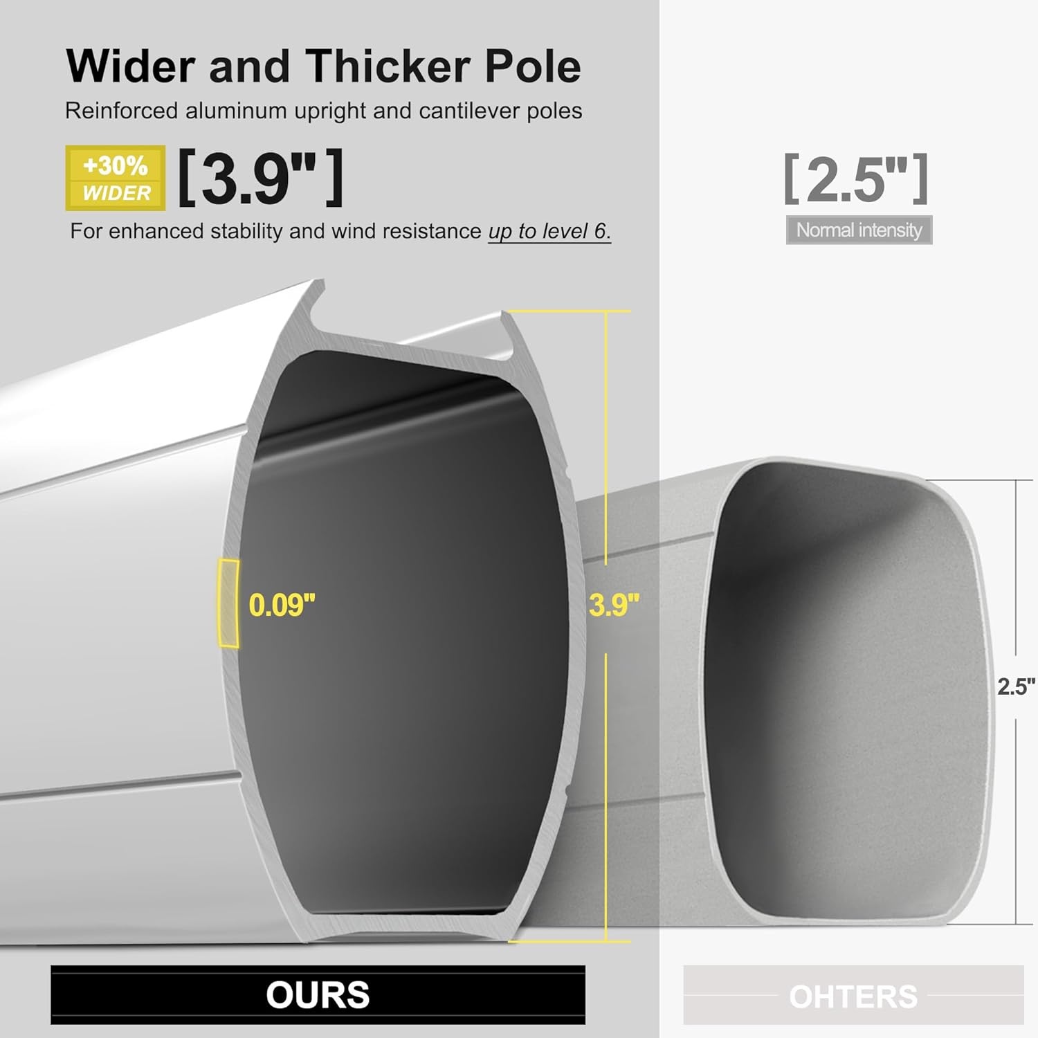- Structural stability: 8 all-aluminum poles and a wider outdoor umbrella tray, anti-oxidation spray painted, extension of time of use