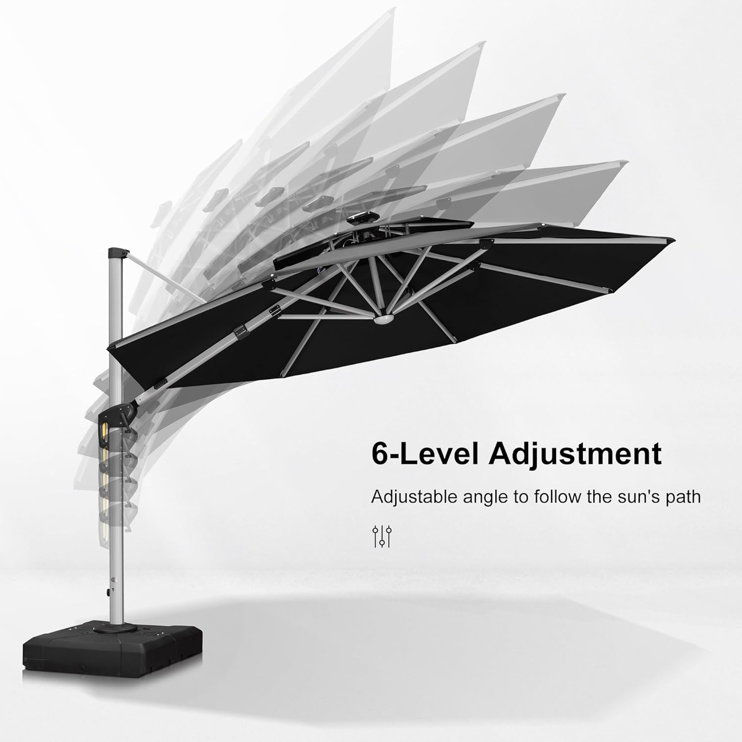 PURPLE LEAF 12ft Patio Umbrella With Base Solar powered LED Cantilever Umbrella with LED lights Windproof Outdoor Offset Umbrella for Garden Deck Pool Patio, Navy Blue