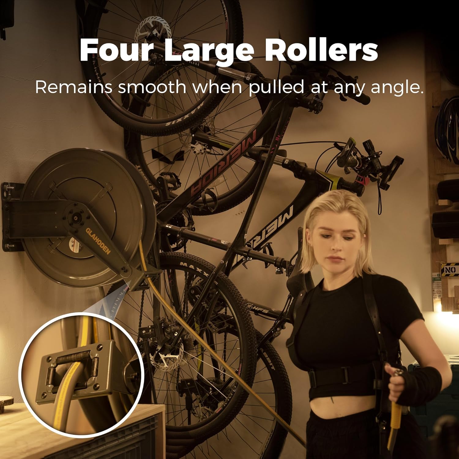- Heavy Duty Double Arm All-steel Construction: GLAHODEN air compressor hose reel retractable is compact and virtually indestructible by using 0.04 in thickened steel and 0.15 in thick support arm. The high quality powder coated surface is extremely durable and always looks like new (weighs 36.7 lbs, please install on a sturdy surface).