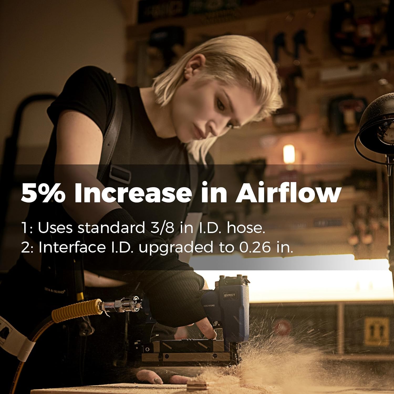 - Flexible Hose and 5 Ft Extension Lead: Its extreme all-weather flexibility is due to the hybrid polymer material that redefines flexibility (-13 to 113 ℉). The 0.22 in double-layer hose wall withstands up to Max 300 PSI so it won't kink, flatten, expand or crack under pressure. Swivel brass Connectors allow for easy installation and the orifice expands to 0.26 in to increase airflow by 5%.