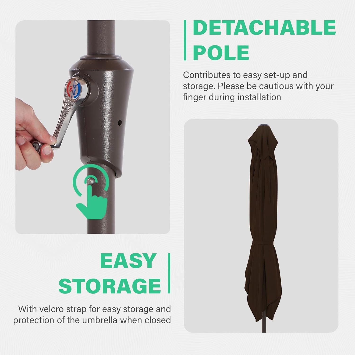- ăTOP AIR VENTă- The double-layer canopy allows full circulation of hot air and quickly reduces the temperature under the rectangle umbrella. It not only improves the stability of the table umbrella and prevents it from being blown over in windy weather, but also allows you and your family to enjoy the leisure time comfortably