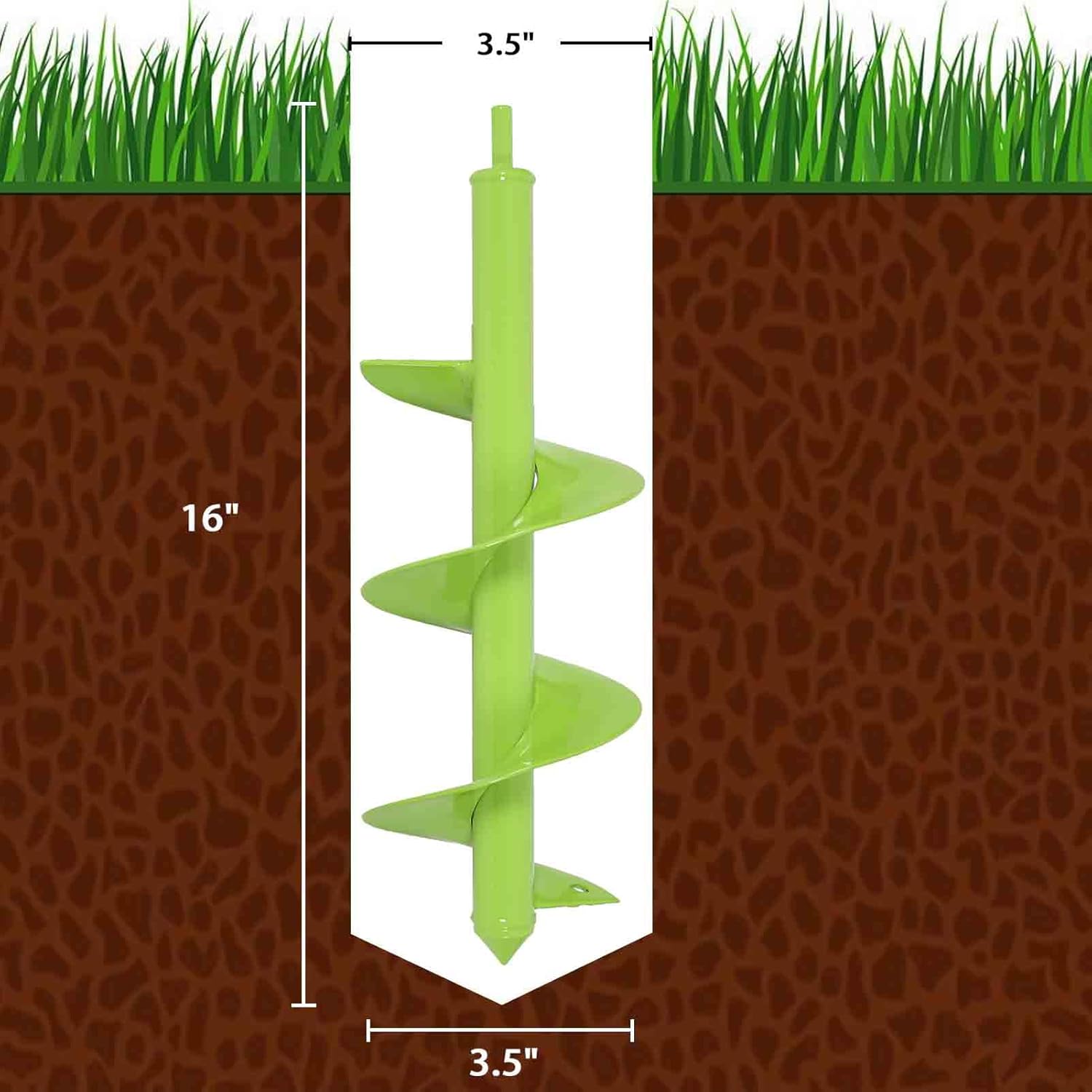 - Size: 0.3 inch (8mm) steel shaft with non-slip hex drive 0.3inch(8mm); 3.5inch (9cm) diameter x 16-inch (40cm) length.Quickly digs holes up to 16 inches deep and 3.5 inches wide using the power of your hand held drill.