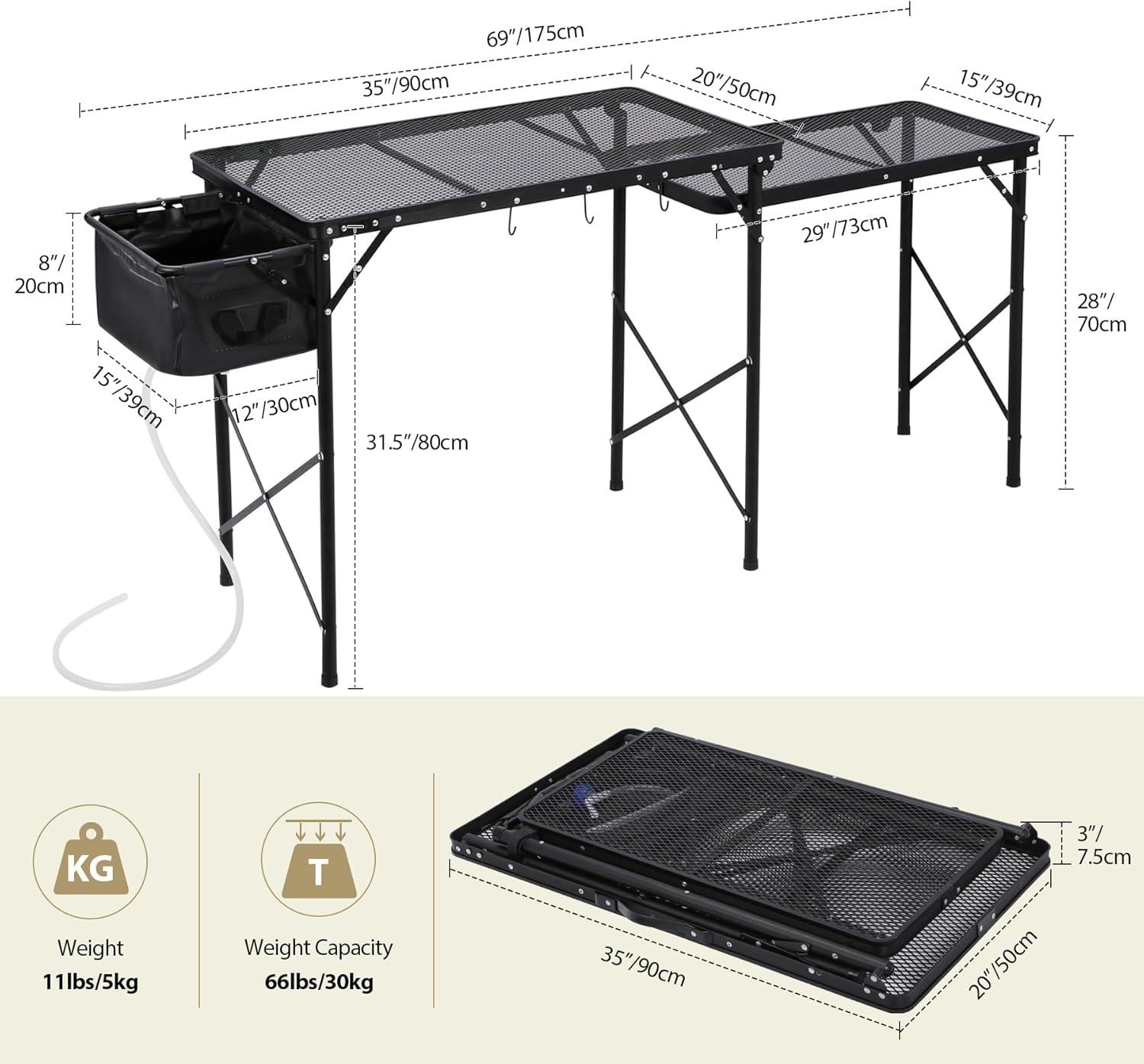 - Foldable & Easy to Carry: With no extra tools required, you can fold or unfold in minutes to set up your perfect camping cooking table anywhere, anytime. Net weight: 11lbs/5kg. It also has a handle for easy carrying.