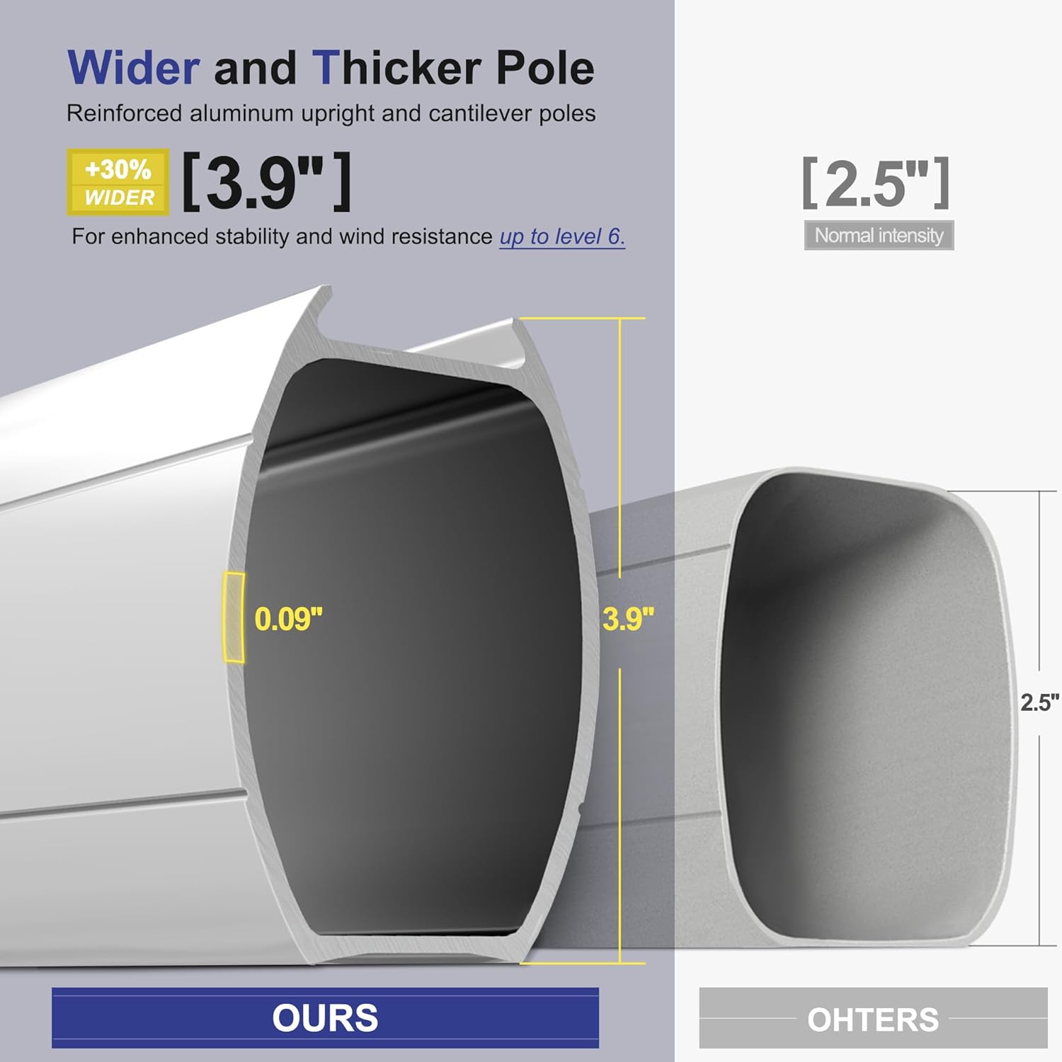 - Structural stability: 8 all-aluminum poles and a wider outdoor umbrella tray, anti-oxidation spray painted, extension of time of use