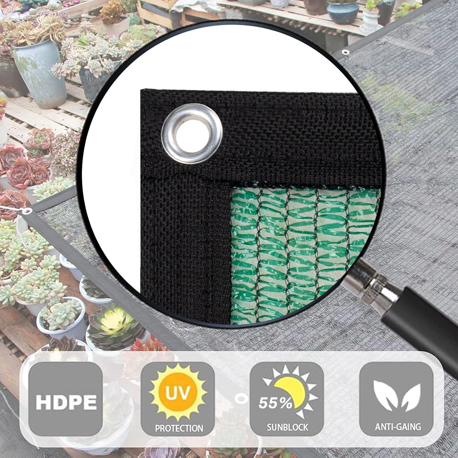 - 【Shade Rate 55%】This shade netting has a shading rate of up to 55%, which is perfect for keeping the environment under shadow and heat out from the sun, creating a comfortable cool and shaded place for people, plants or animals