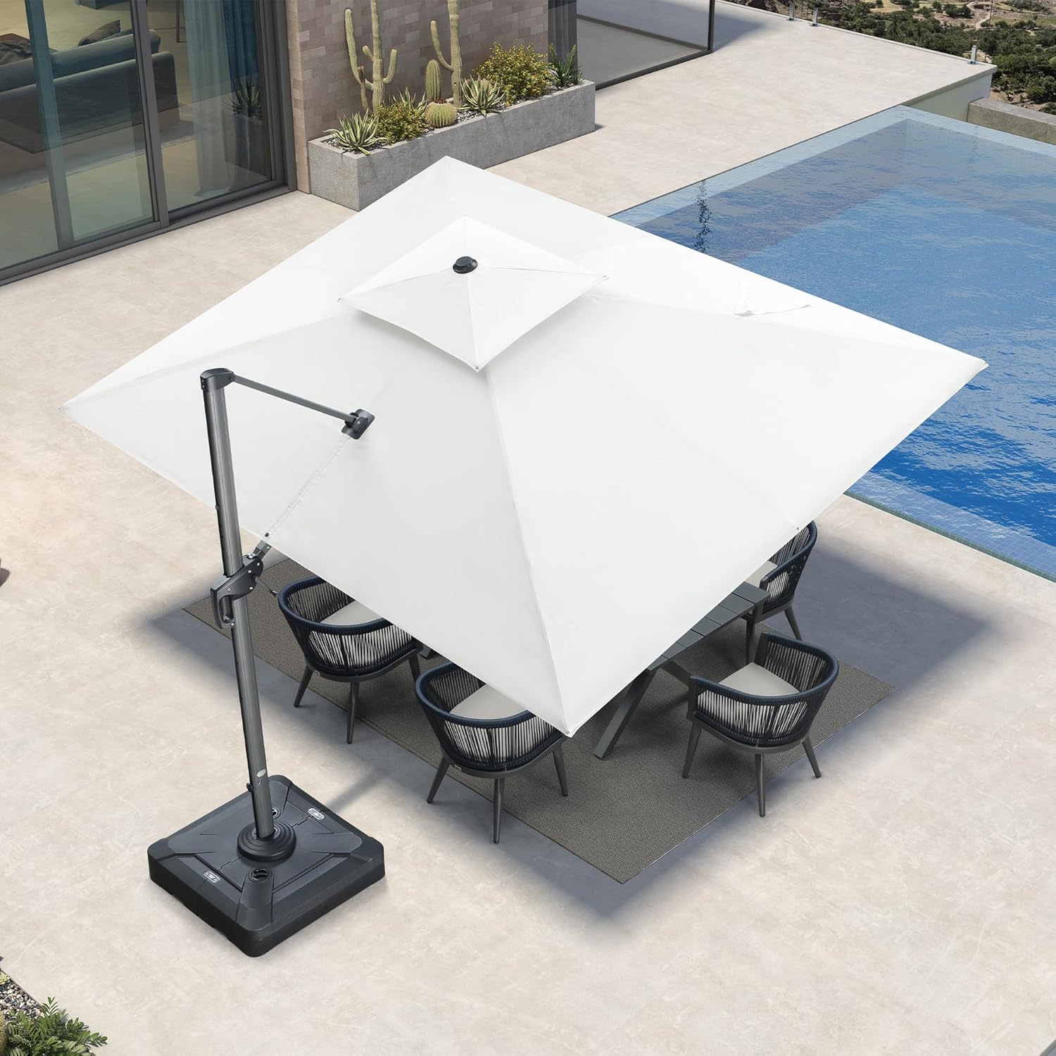 - Superior UV Protection: Featuring industry-leading fabric, this cantilever umbrella blocks over 98% of UV rays to effectively reduce skin cancer risks. 5 years of fade resistance, water and stain resistance.