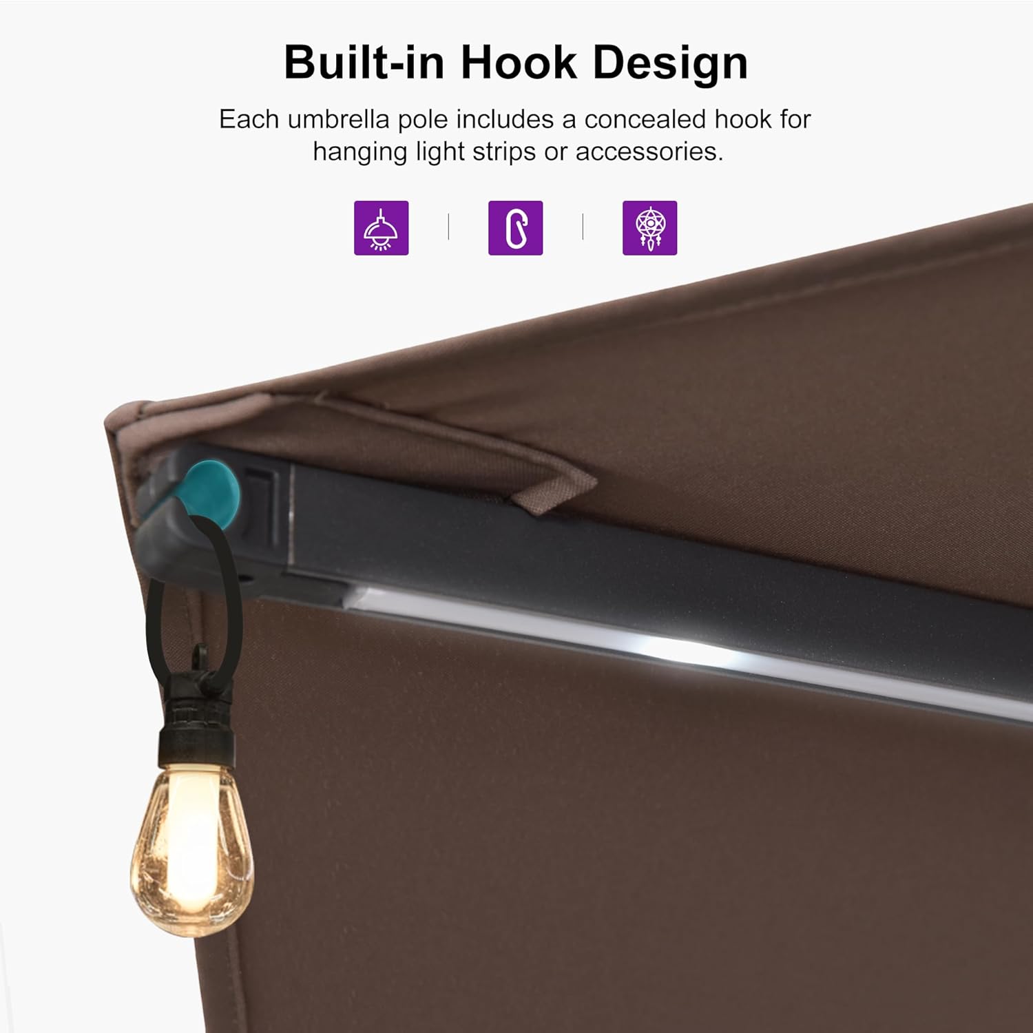 - Double-Sided Umbrella: This market patio umbrella provides up to 15 feet of coverage, offering shade for at least an 8-piece dining set. It is ideal for use in spacious patios, gardens, or by the poolside