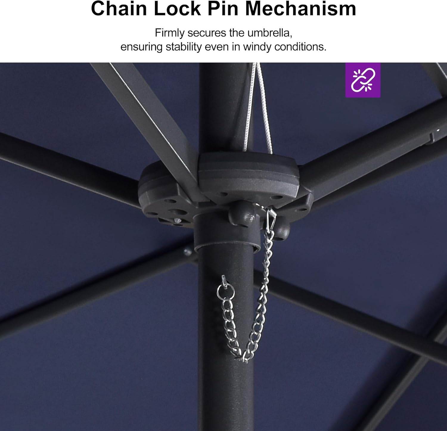 - Crank Design: The simple crank lifting system is equipped, enabling the convenient and rapid opening and closing of the patio umbrella. Additionally, an advanced chain lock pin is provided, ensuring the stability of the umbrella even in windy conditions