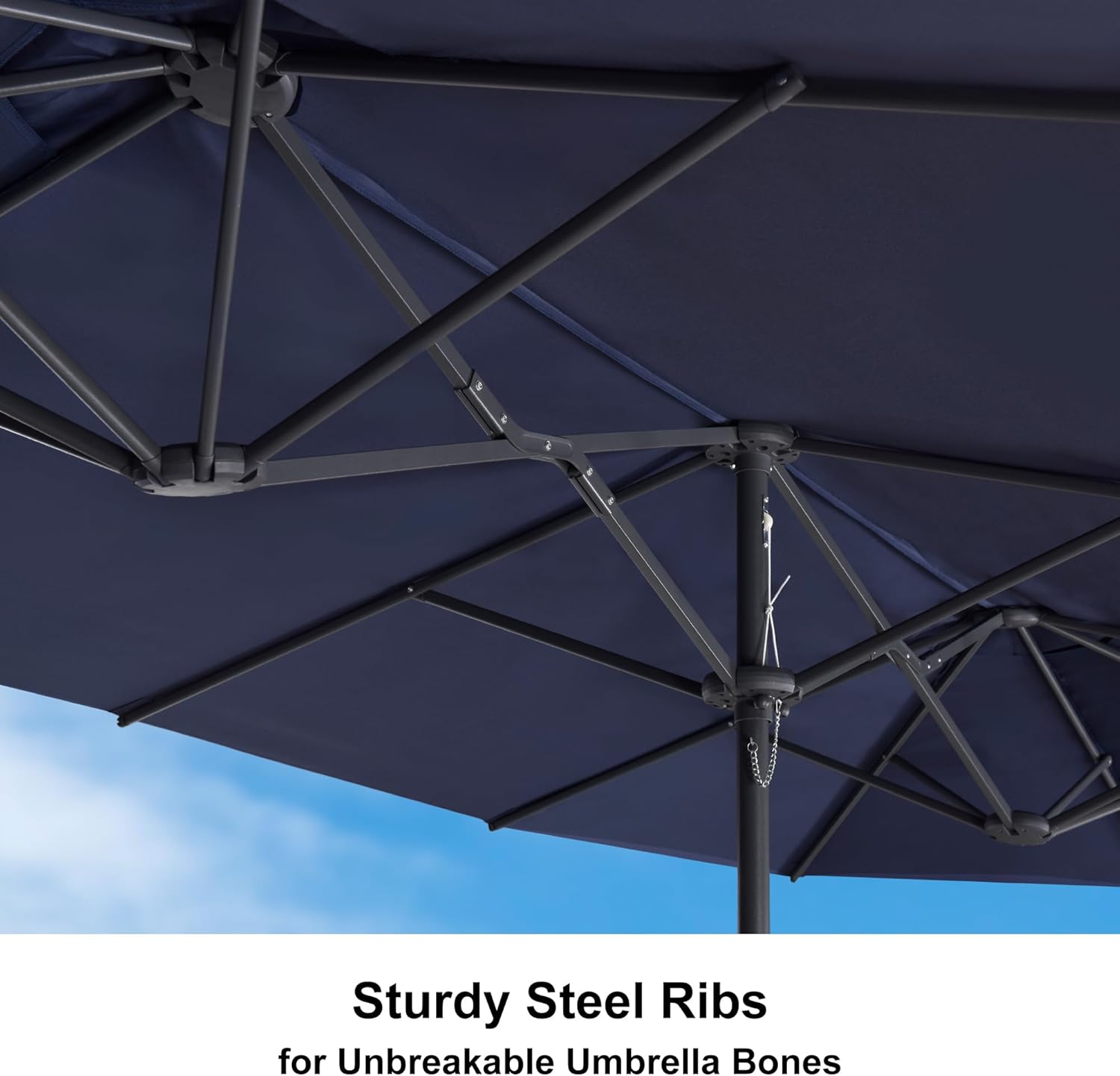 PURPLE LEAF 14ft Patio Market Umbrella Outdoor Double-Sided Umbrella with Base and Crank Rectangle Table Umbrella for Pool Deck Garden, Navy blue