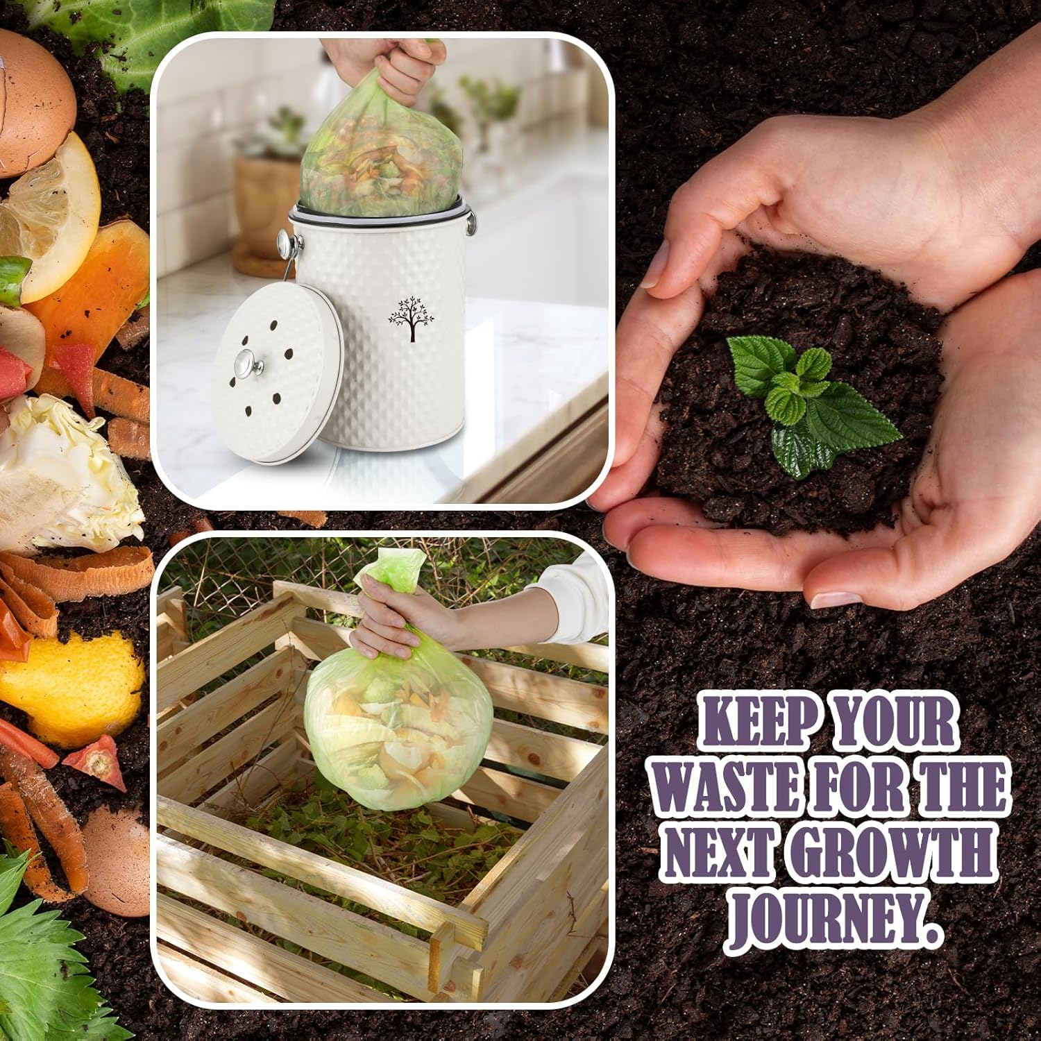 - 【ENVIRONMENTALLY FRIENDLY COMPOSTING】:The compost bin is the perfect odorless storage container for organic kitchen waste in your home.It will complement any kitchen decor.Put kitchen waste into outdoor organic fertilizer for composting and reuse. Not only does it make a stylish decoration, but it’s also functional and great for a greener environment.