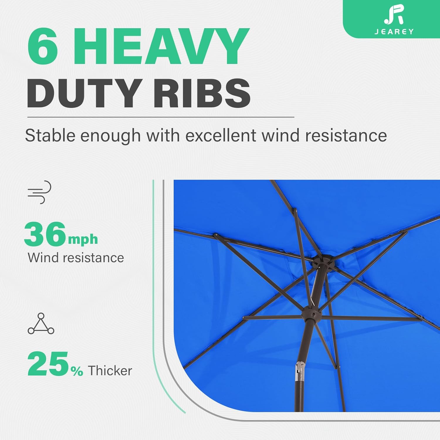 - ăSTRONG FRAMEă-The umbrella outdoor patio structure is made of sturdy cast-iron, powder coated iron pole and 6 sturdy umbrella ribs provide strong support and greatly ensure the stability of the pool umbrella
