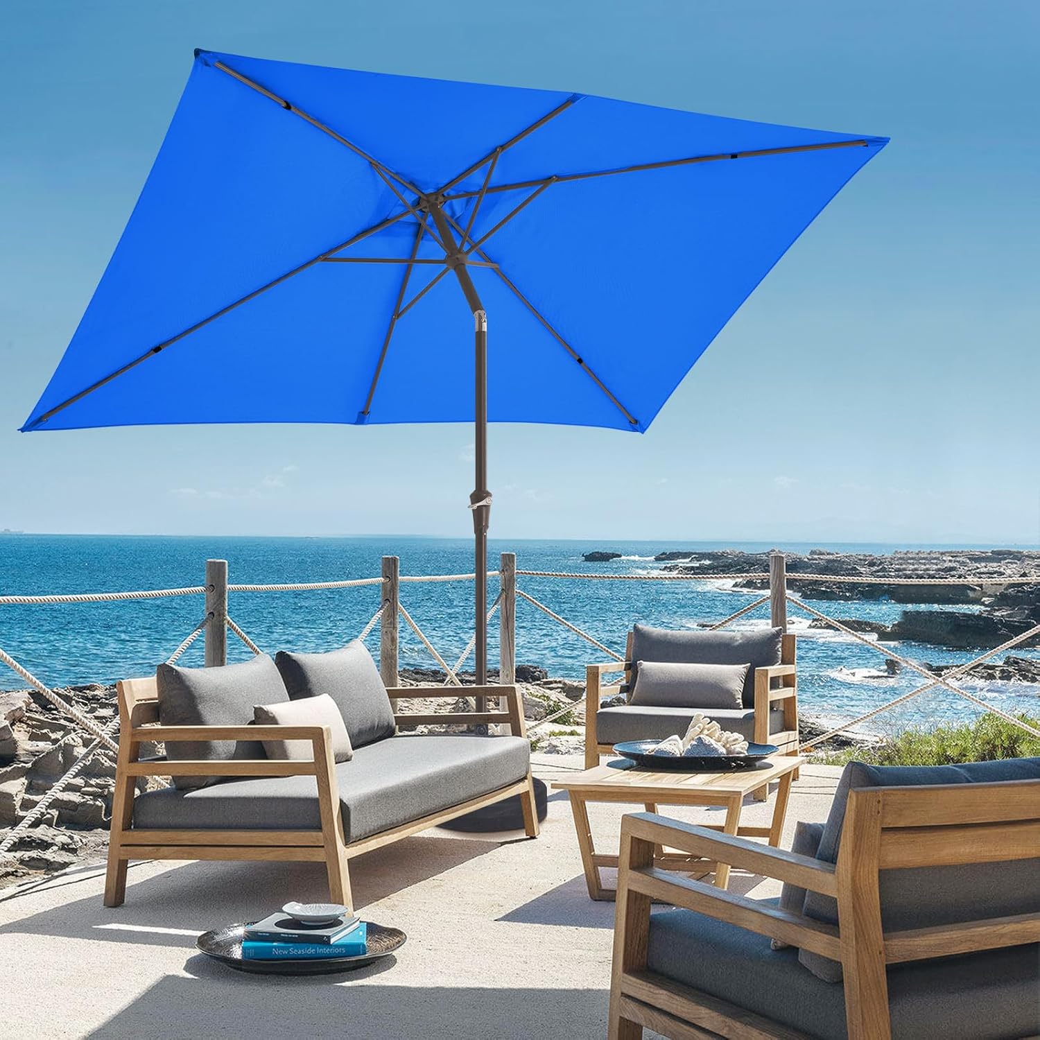 - ăWIDE SHADEă- The size of JEAREY rectangular patio umbrella is 6.5' x 10'. The rectangle design is beautifully styled and has a wide range of shade space, which can accommodate a table and chairs for 4-6 people
