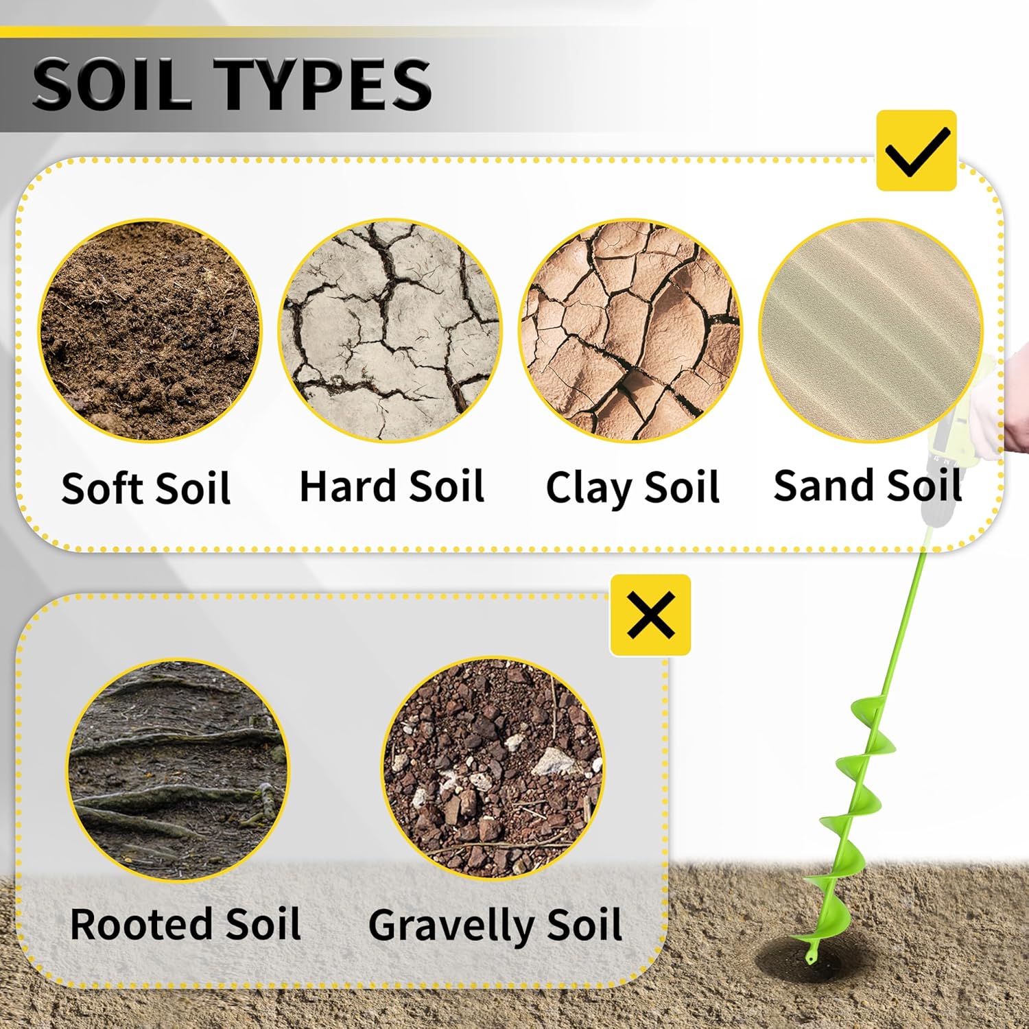 - 【Applicable Soil】Our auger drill bit for planting is ideal for use in sandy, loamy, and clay soils that are relatively soft. It excels in these types of soil, ensuring efficient and precise drilling. However, it is not recommended for soils with many rocks or dense root systems, as these can hinder its performance.