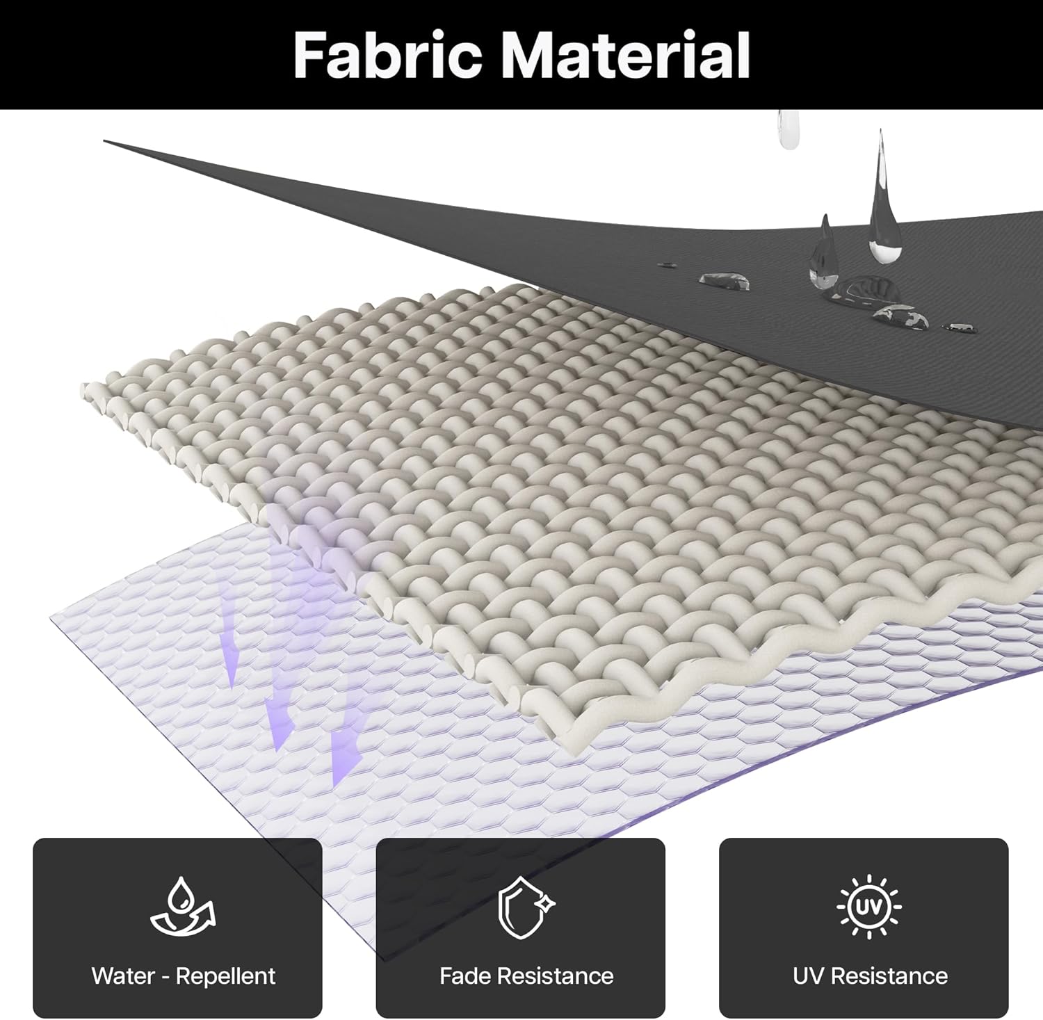 - Upgraded Fabric: Made of 100% high quality polyester fabric, waterproof, UV resistant and fadeless, long lasting, easy to clean. Effectively blocking out harmful UV rays, ensuring a comfortable outdoor living space.