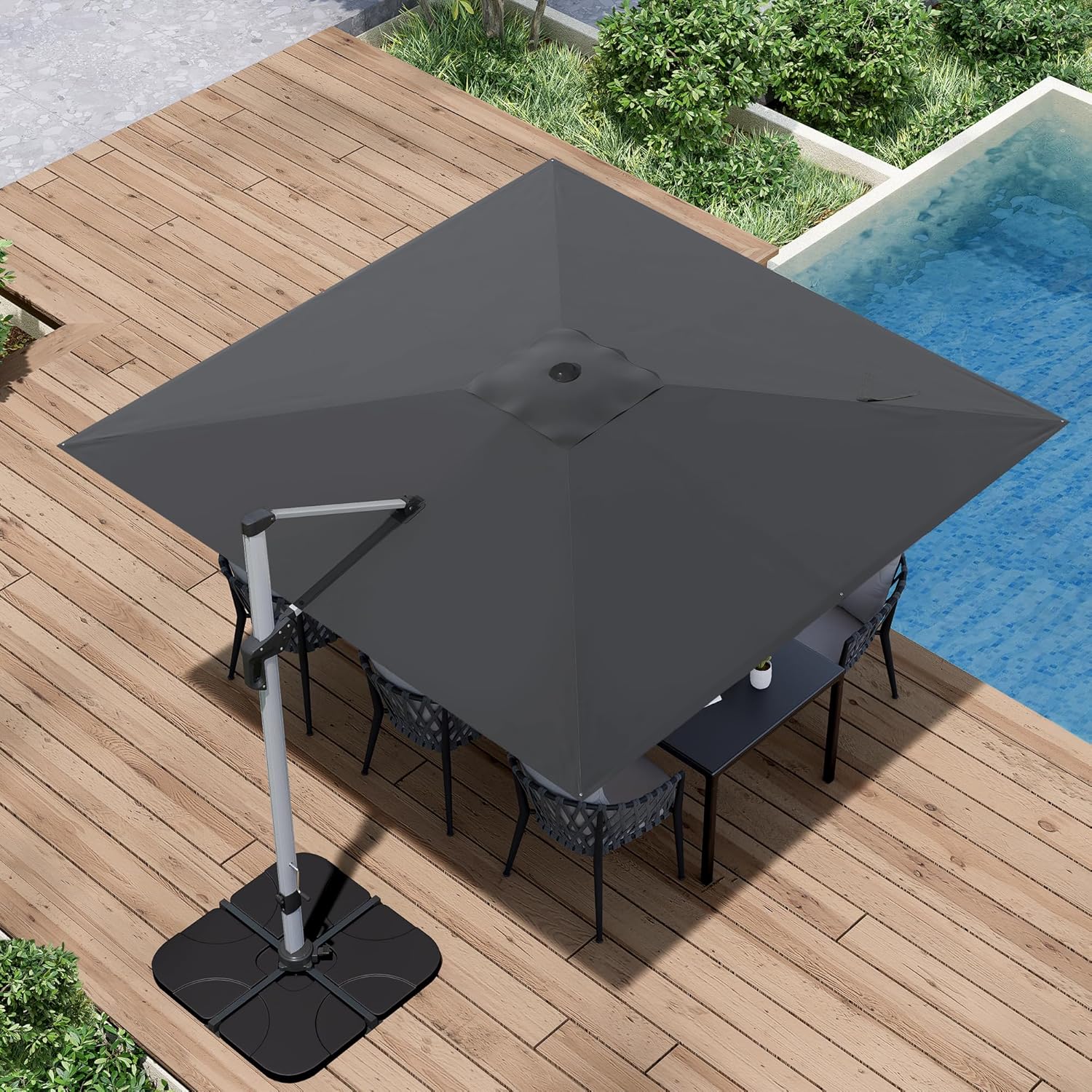 - 360-Degree Rotation & Easy Gliding: A built-in cross base is compatible with 4-piece weighted umbrella stands. Step on the pedal and turn the sturdy aluminum pole to your desired position.