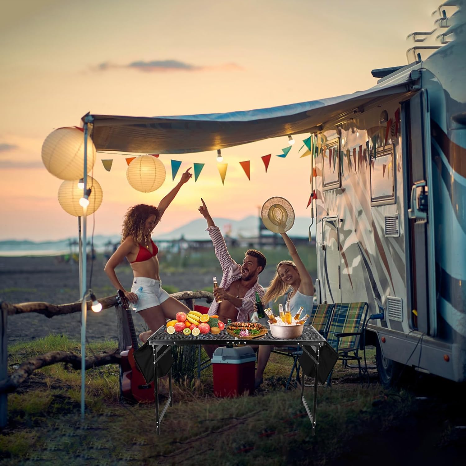 - Portable Camping Table - The unfolding size: 1. With Extension Board - 69.3"( Length ) x 23.6"( Width ) x 21.6/24.6/27.6"( Height ) 2. Without Extension Board -47.2"( Length ) x 23.6"( Width ) x 21.6/24.6/27.6"( Height ), please confirm the size before purchasing mediuml camping table