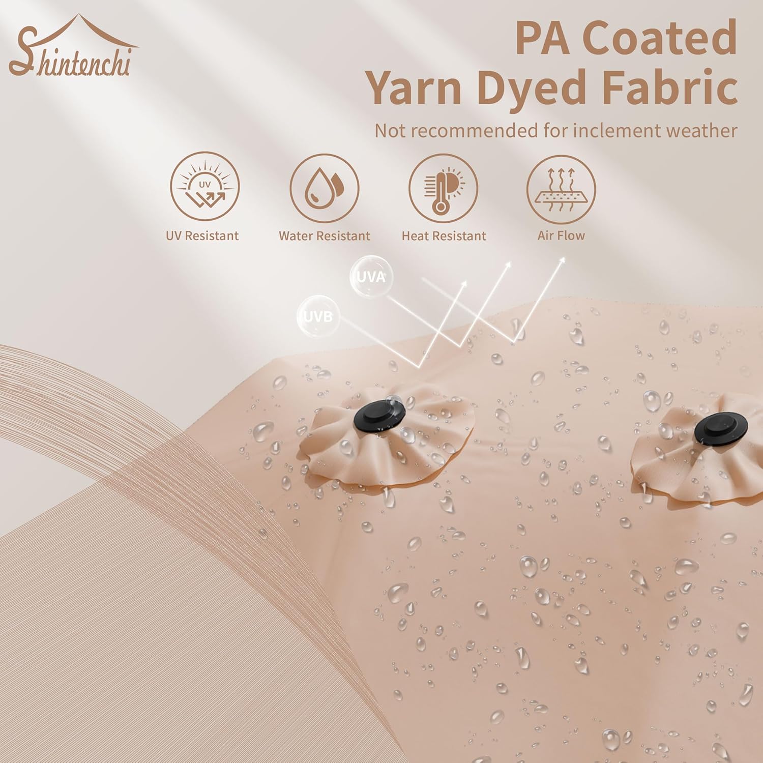 - Premium Fabric Canopy: 100% polyester canopy with UV protective certification, featuring fade-resistant and tear-proof properties. Selected performance withstands sun exposure and rain showers