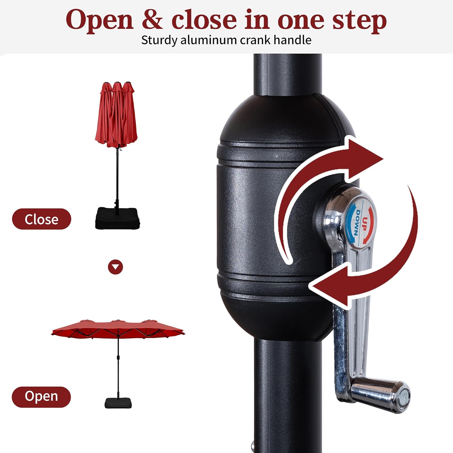 - Easy to Use: This outdoor umbrella designed with crank system is convenient to open and close.easy to assemble and use. Suitable for various spaces such as yards, decks, pools, etc., creating a comfortable shaded environment for different settings.