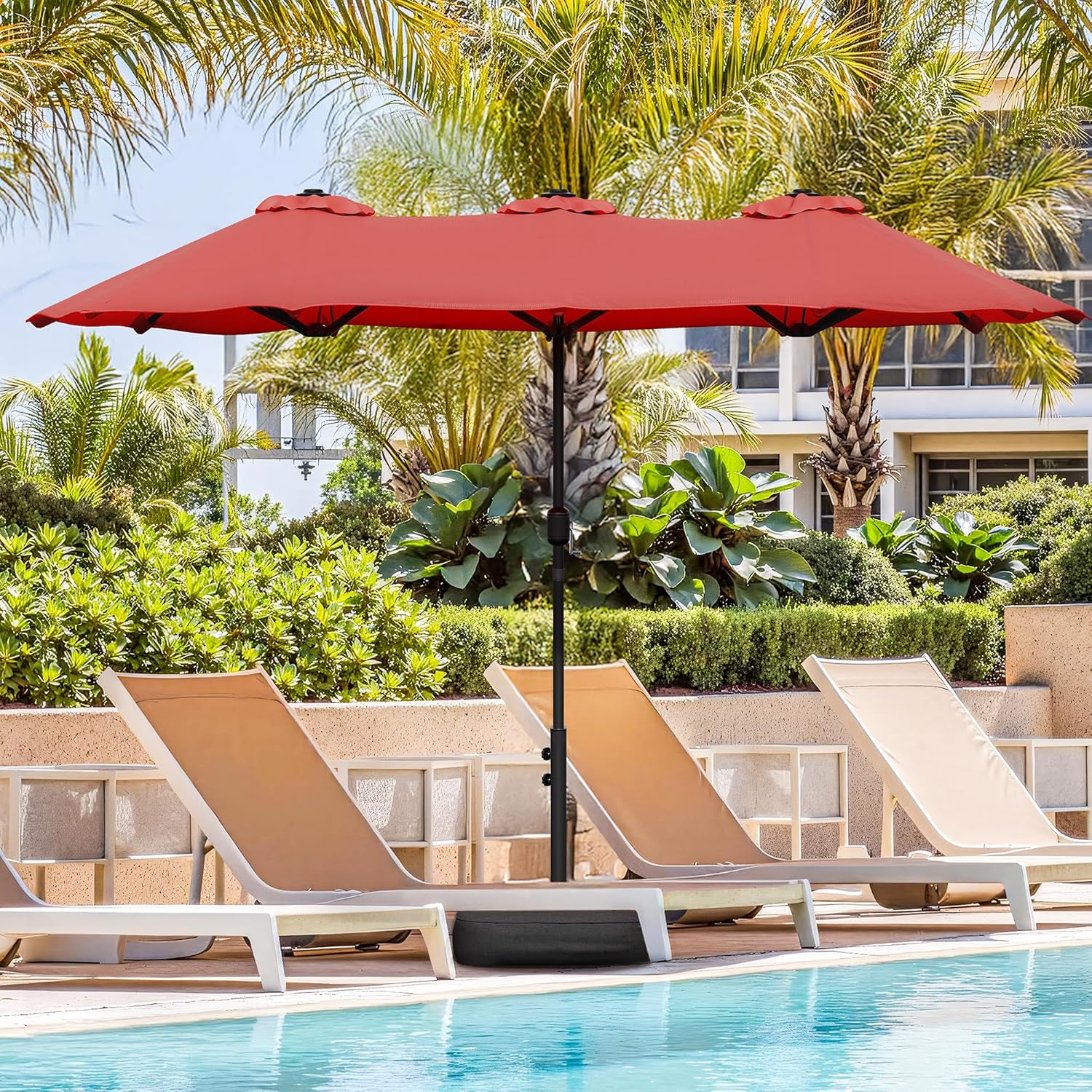 Vongrasig 15FT Large Patio Umbrella with Base Included, Outdoor Double sided Umbrellas with Crank Handle, Rectangle Table Umbrella for Pool Lawn Garden Market