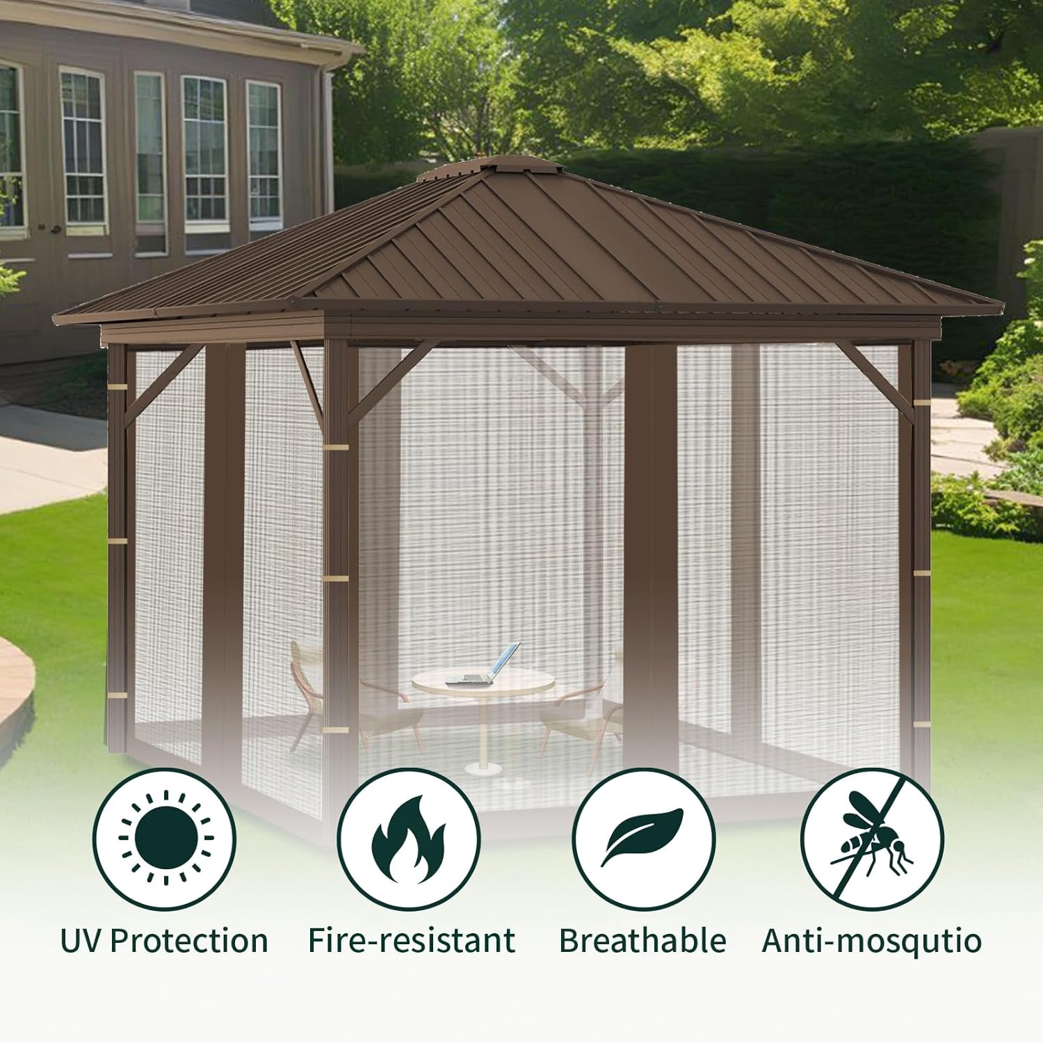 Replacement Gazebo Mosquito Netting 10' x 12',Universal Netting for Canopy Tent,4-Panel with Zipper for Outdoor Patio,Backyard (Mosquito Net Only,Brown)