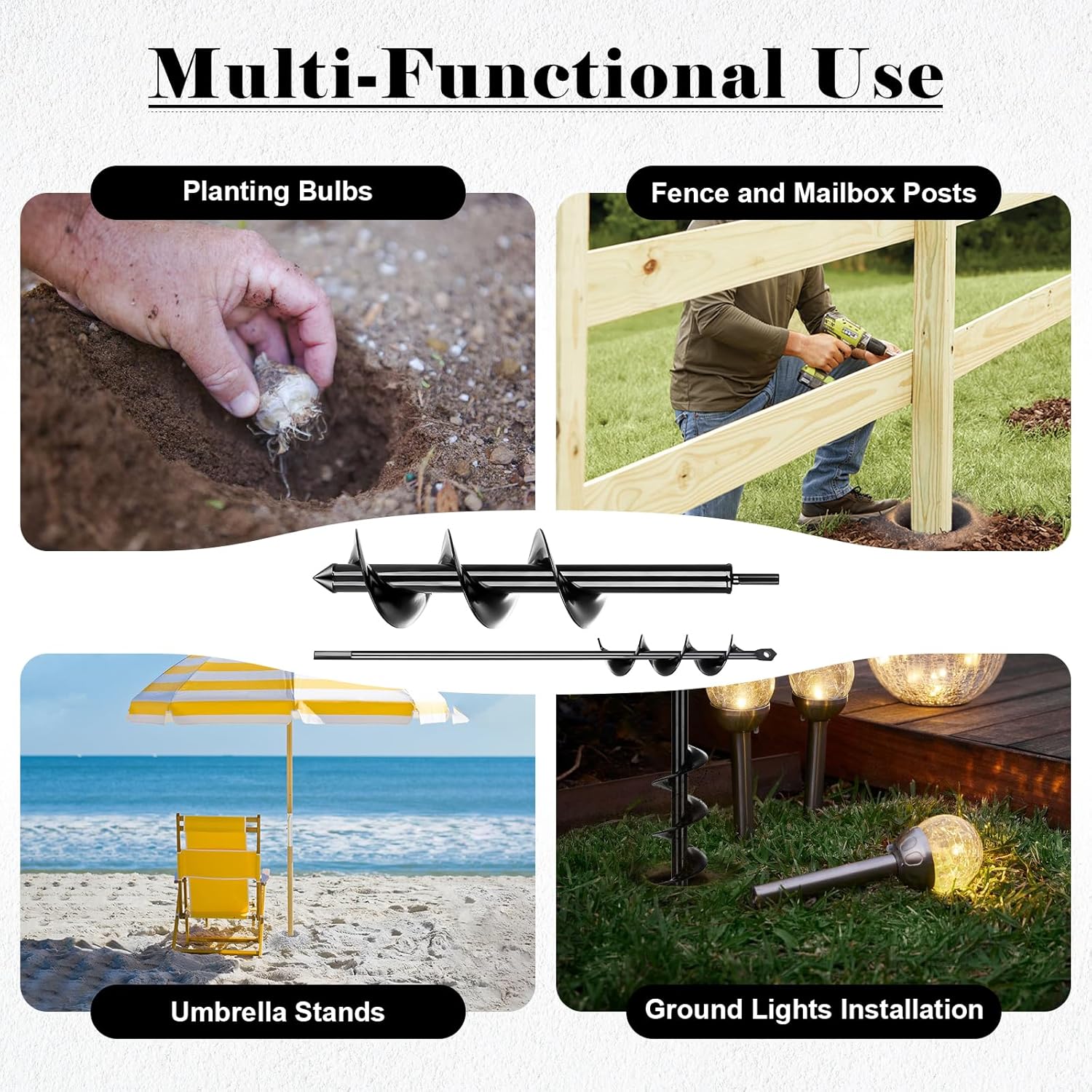 - Easy to Use:Just attach the drill auger to any standard 3/8" drill, and you're all set to start digging with ease. Add water to the soil prior to drilling for easier penetration. Enjoy happier planting and make your gardening experience more enjoyable than ever.