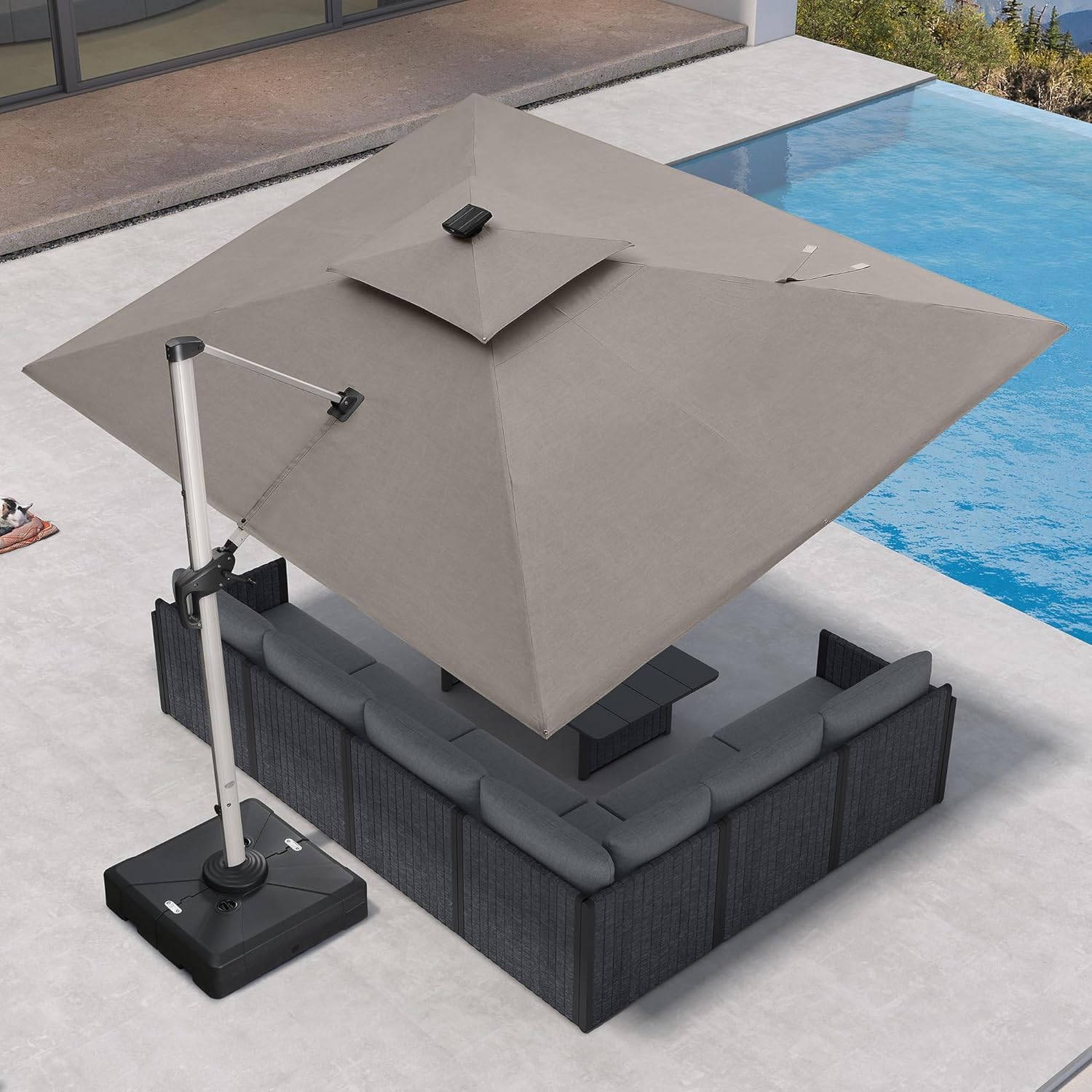PURPLE LEAF 9' X 12' Solar Powered LED Patio Umbrella Cantilever Umbrellas Offset Double Top Hanging Outdoor Umbrella Market Umbrellas for Garden, Heather Taupe
