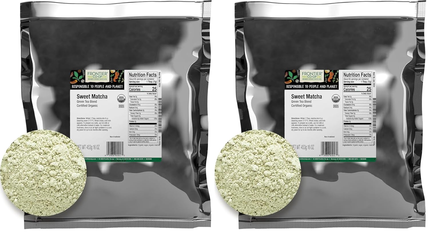 - Matcha Green Tea - Frontier Co-op Organic Sweet Matcha Green Tea is a premium, finely ground Japanese tea with a rich, vegetal flavor. Enjoy its unique sweetness, perfect for elevating your tea or latte experience.