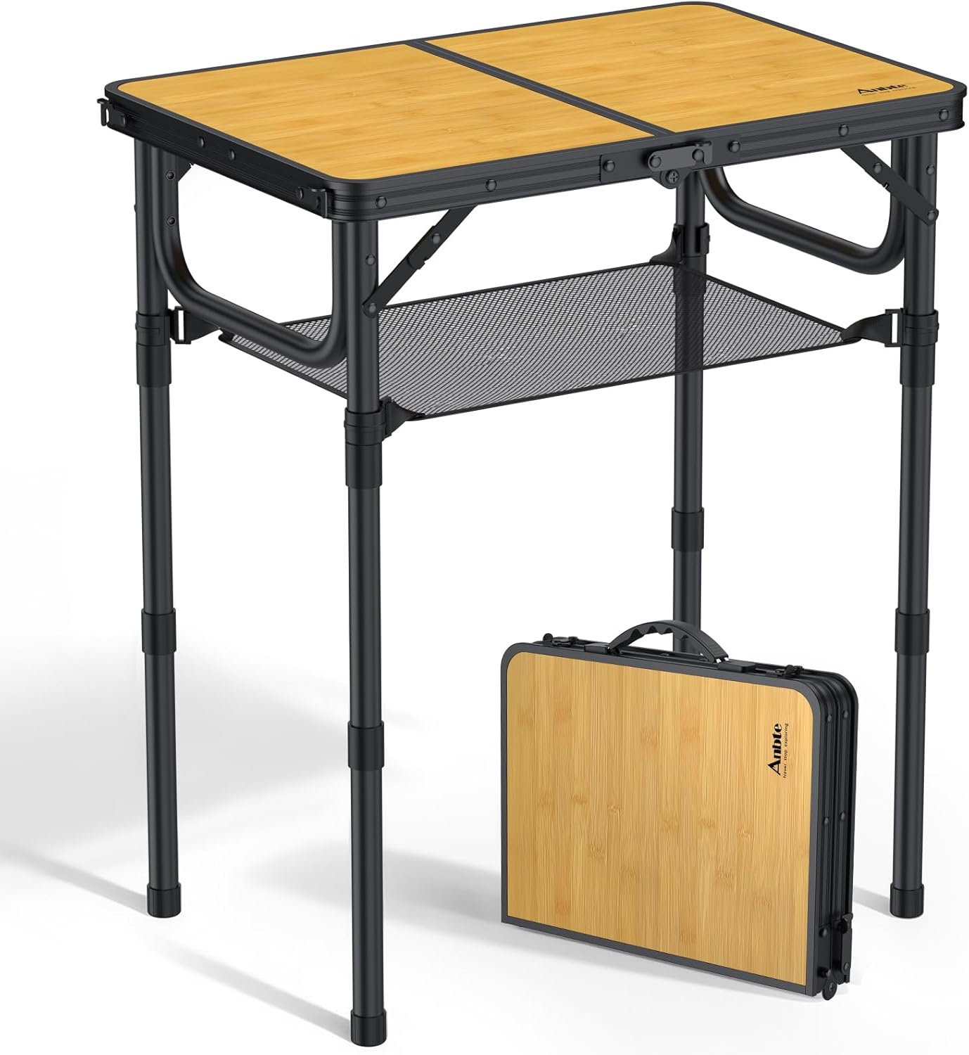 - 3 Adjustable Heights up to 27.5 in: You have 3 fixed length for the legs of the anbte folding table with a height of 10, 18.1 and 27.5 inches (23, 46 and 70 cm). You can sit on the lawn when picnic with the lowest height. Or you can siting beside the table with chair when adjusted to the highest height